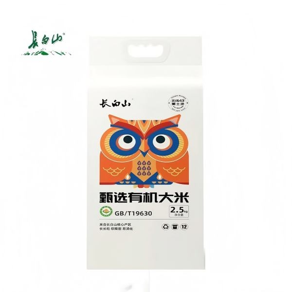 长白山大米山泉水灌溉,寒地生长,绿色加工,不抛光;长白山大米安全、营养、好吃;甄选有机稻香王,北纬43度,长粒王;有机食品,经过有机认证机构认证食品