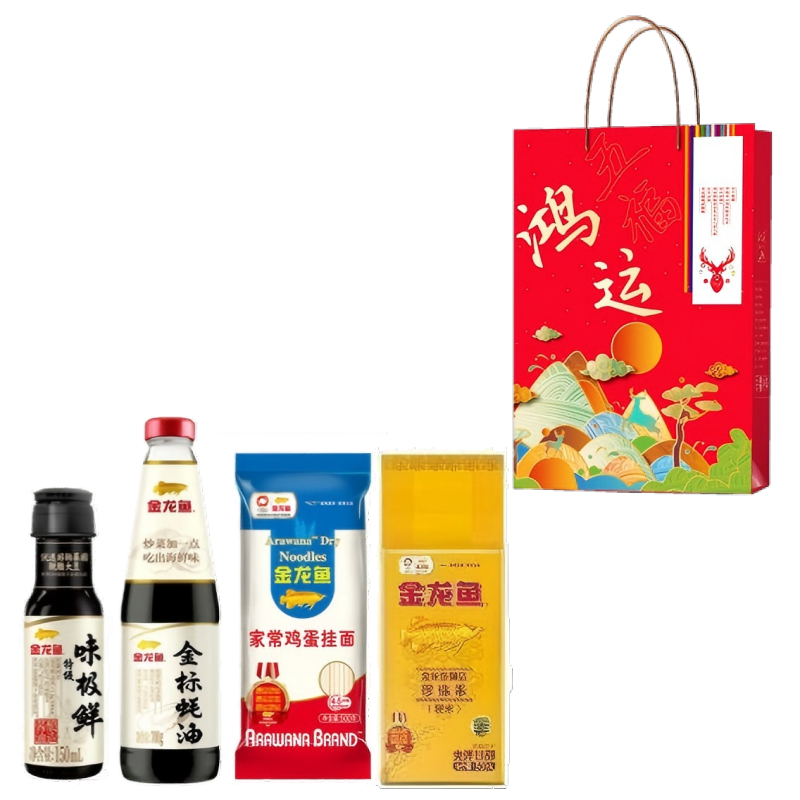 金龙鱼是大品牌,质量安全、品质保证,吃的放心。;礼盒内配5种产品,都是家庭必需品。;礼盒设计精美,包装大气喜庆,性价比高,值得购买。
