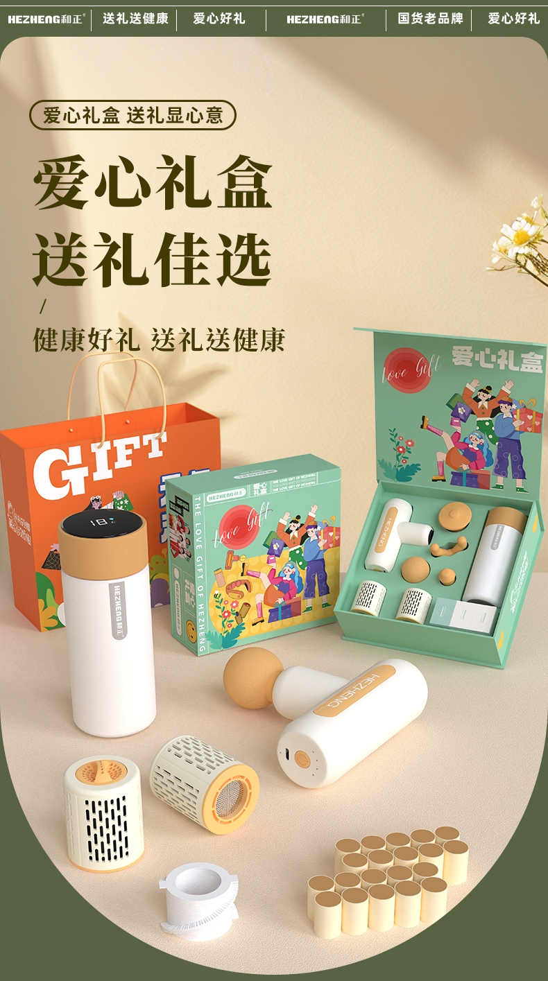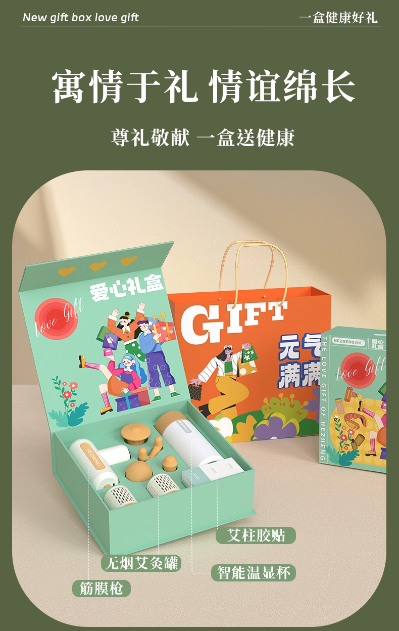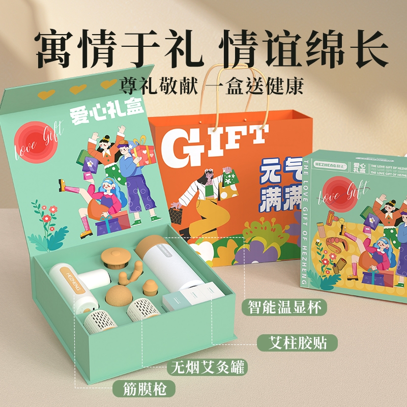 筋膜枪采用无刷电机,带智能感应功能、多档位切换;艾灸罐可循环使用;,明火悬灸,升降调温,阻燃材质;智能温显保温杯内胆选用高品质食品级316优质不锈钢