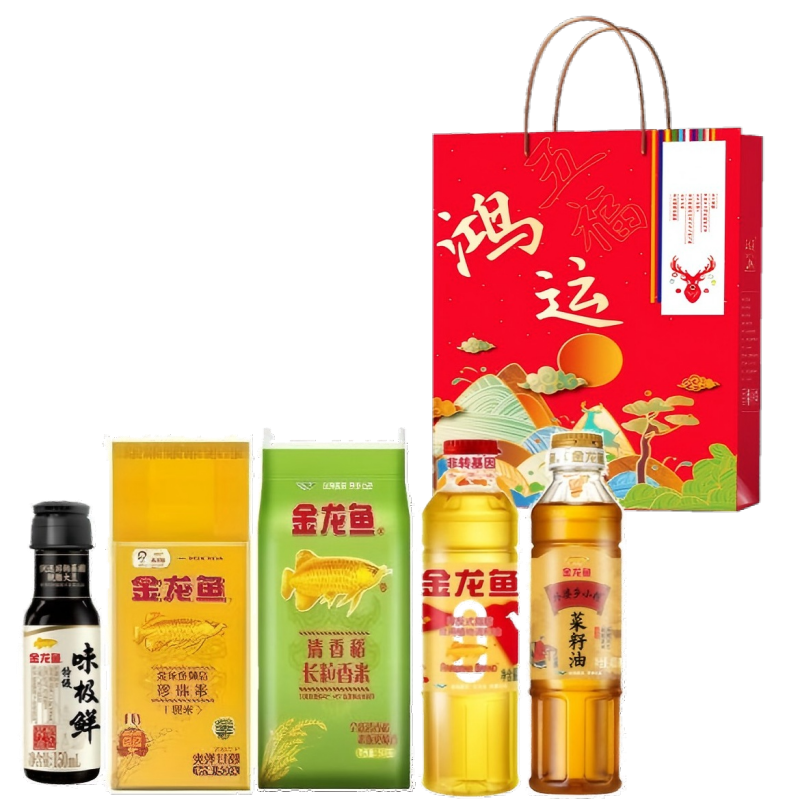 包装规格:金龙鱼非转基因调和油400ml 金龙鱼外婆香小榨菜籽油400ml 金龙鱼御品珍珠米500g 金龙鱼清香稻长粒香米500g 金龙鱼特级味极鲜酱油150ml