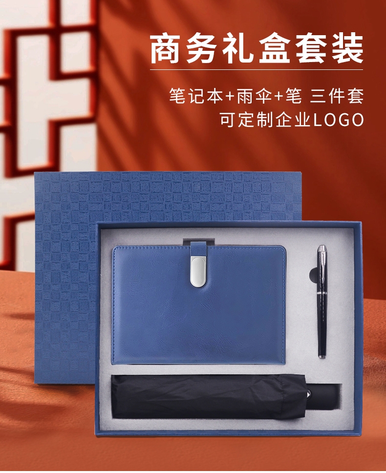 礼盒配置:笔记本+伞+笔