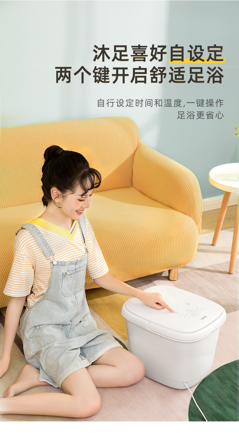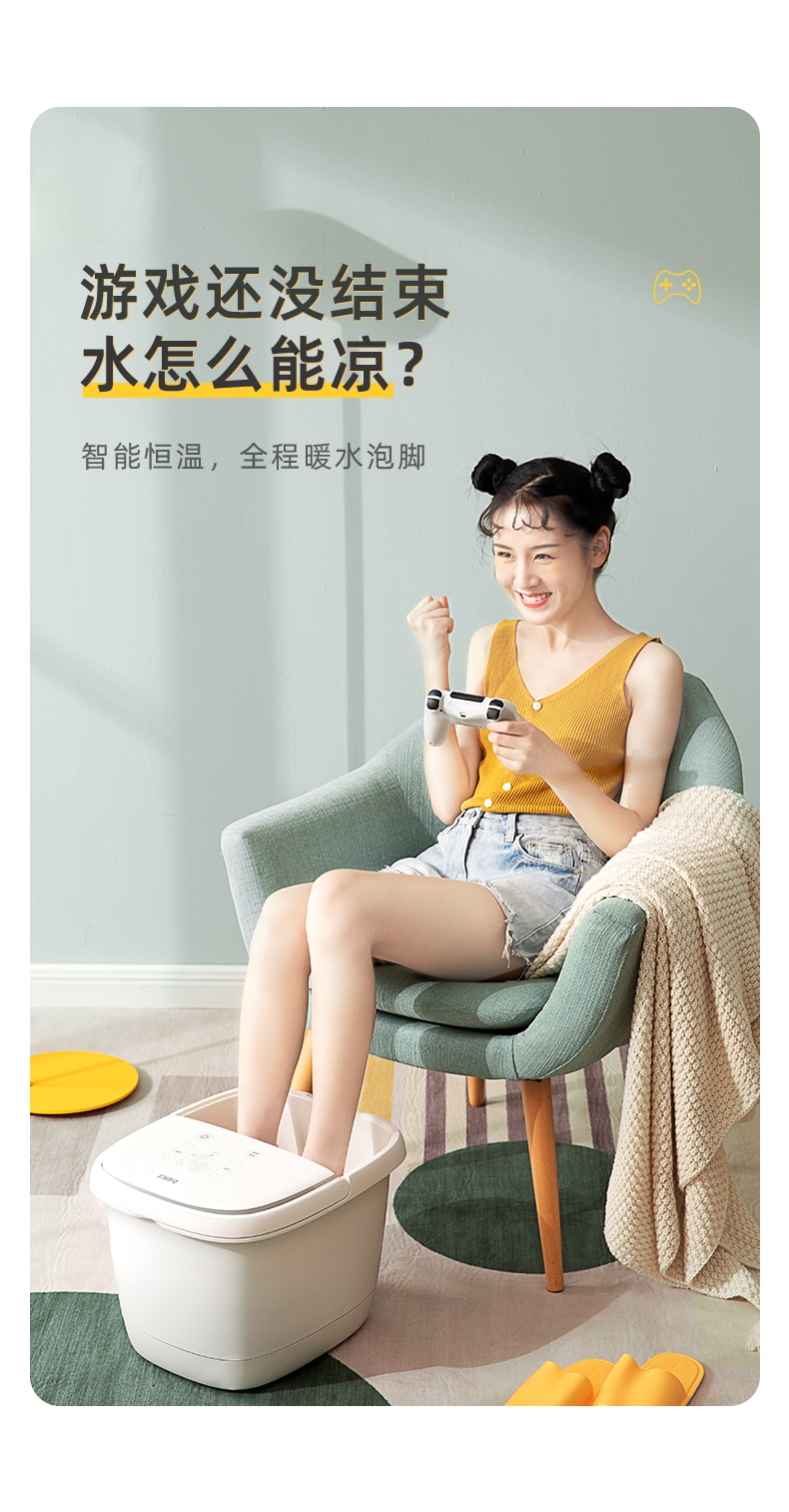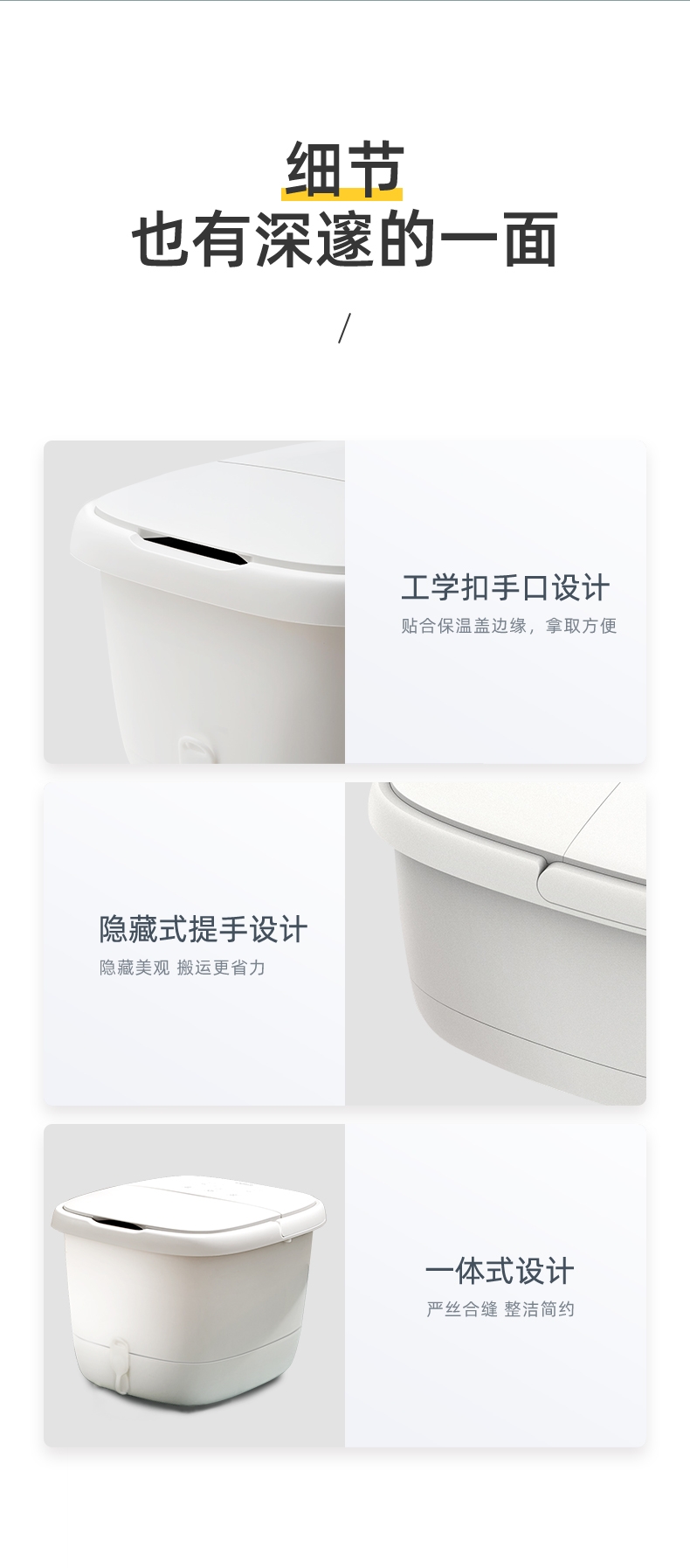 智能触控面板,盆内深16.5cm;8个非电动滚轮、4*2组自助滚轮按摩;智能记忆、涌泉冲浪