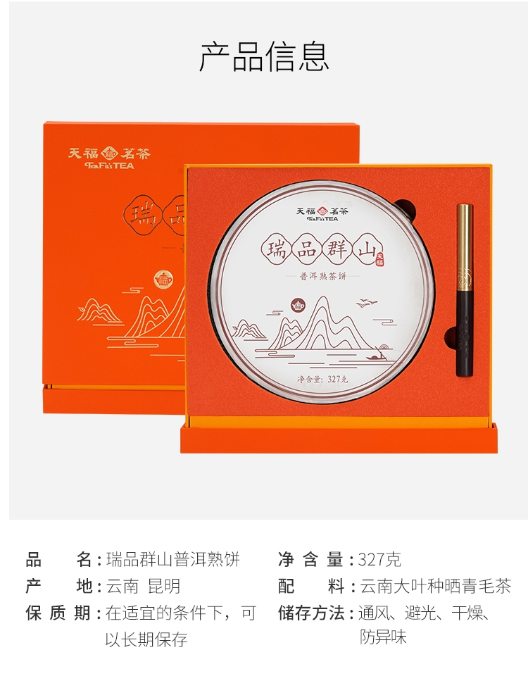 天福茗茶 瑞品群山普洱熟饼327g137321-PHS-RPQS-327G-S1