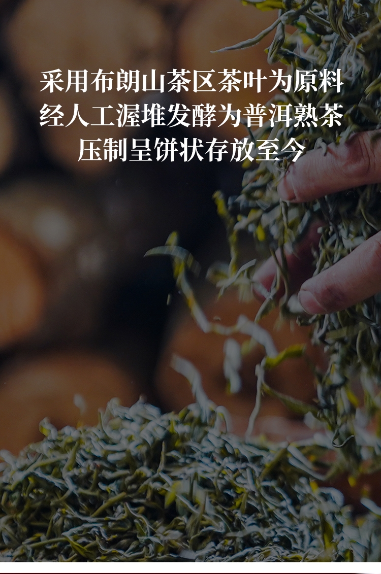 走遍三山五岳 品遍群山优茗 瑞品群山普洱熟饼;岁月藏香 送礼收藏佳品;采用布朗山茶区茶叶为原料 条索清晰;经人工握堆发酵为普洱熟茶 压制呈饼状存放至今 ;圆润饱满 松紧适中 汤色褐红 滋味醇厚 叶底肥厚
