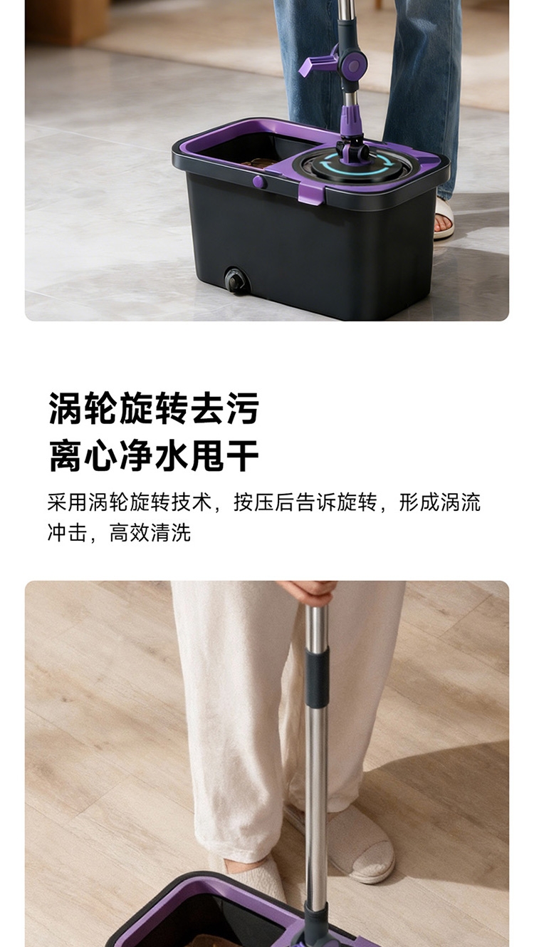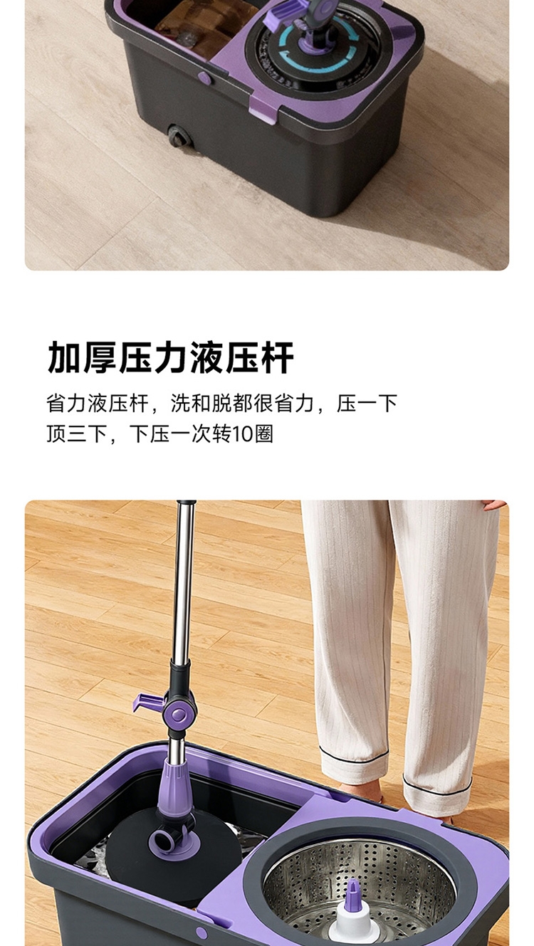 双驱动免手洗;涡轮旋转去污;加厚压力液压杆