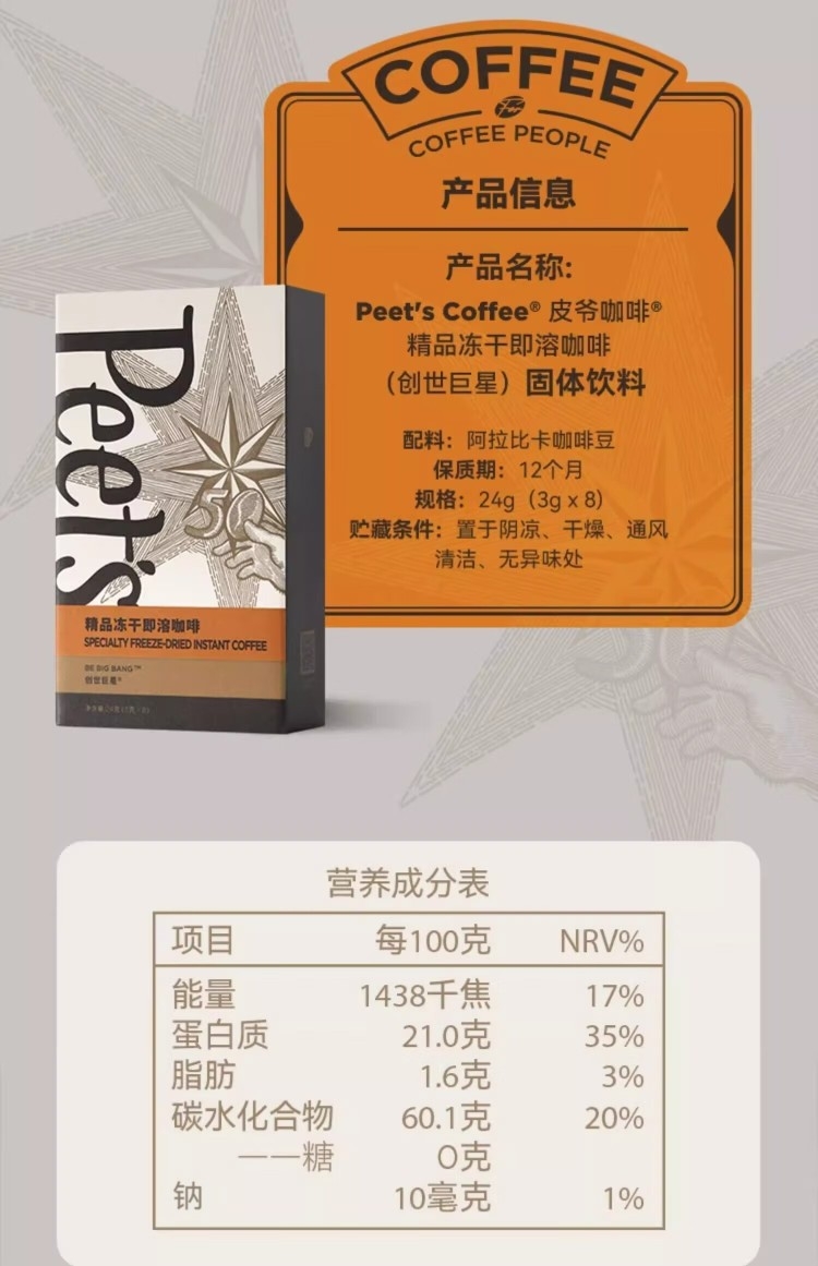 皮爷咖啡 精品冻干即溶咖啡粉罐装24g