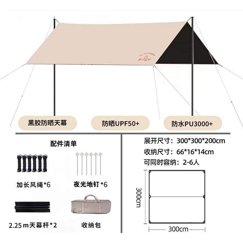 防晒UPF50+ 防水:pu3000+;经典款流沙金色、 性价比高;;手提包收纳设计,收放自如;;自由搭建,配件齐全;