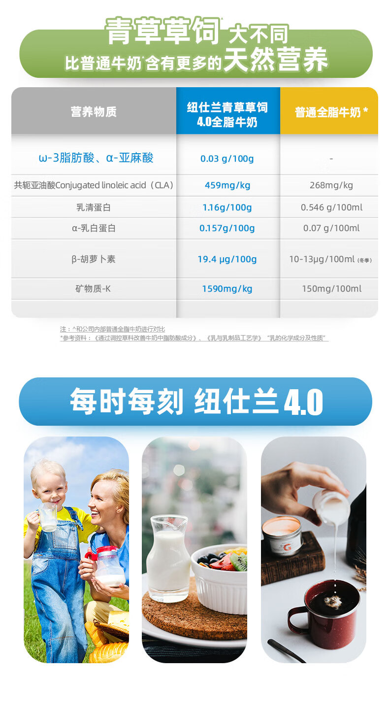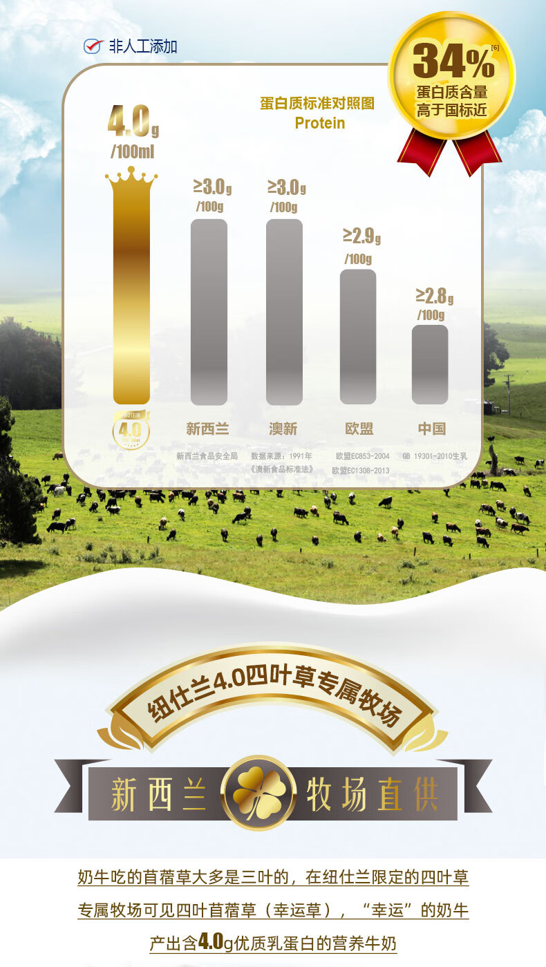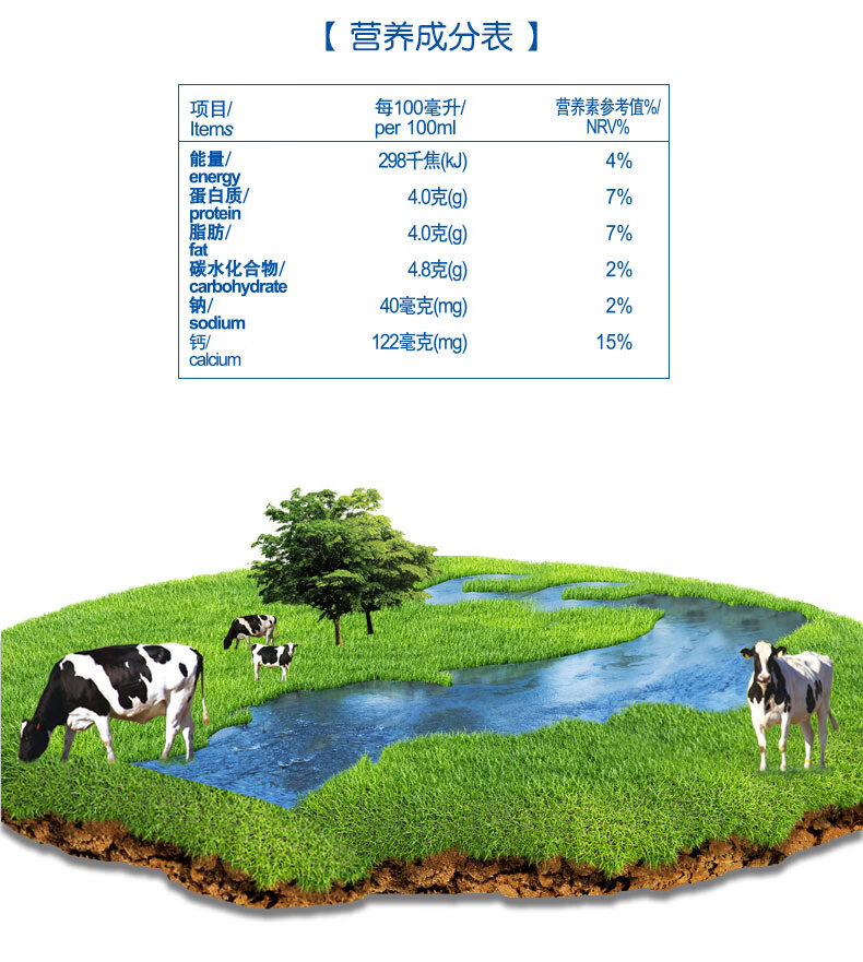 特色:4.0g高蛋白高钙全脂纯牛奶