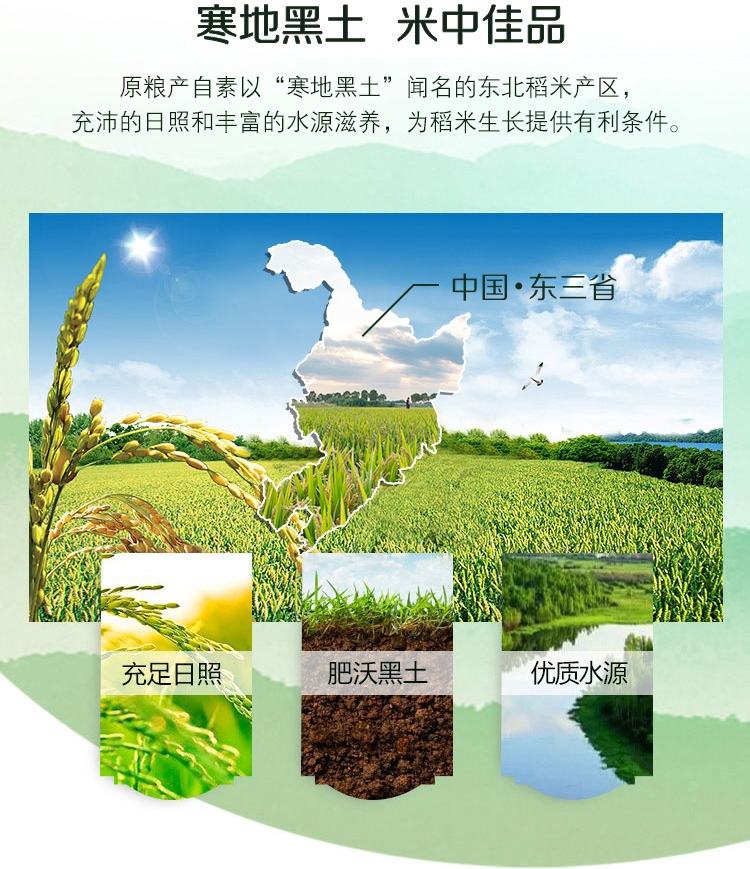 原粮产自素以“寒地黑土”闻名的东北稻米产区;充沛的日照和丰富的水源滋养;为稻米生长提供有利条件