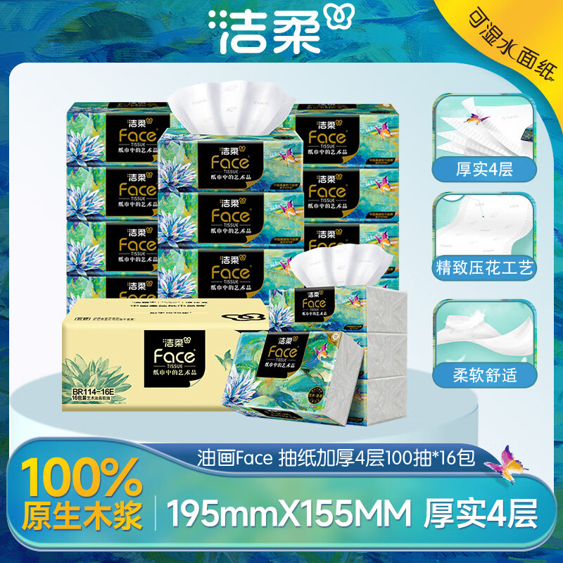 洁柔 艺术油画Face4层100抽*16包