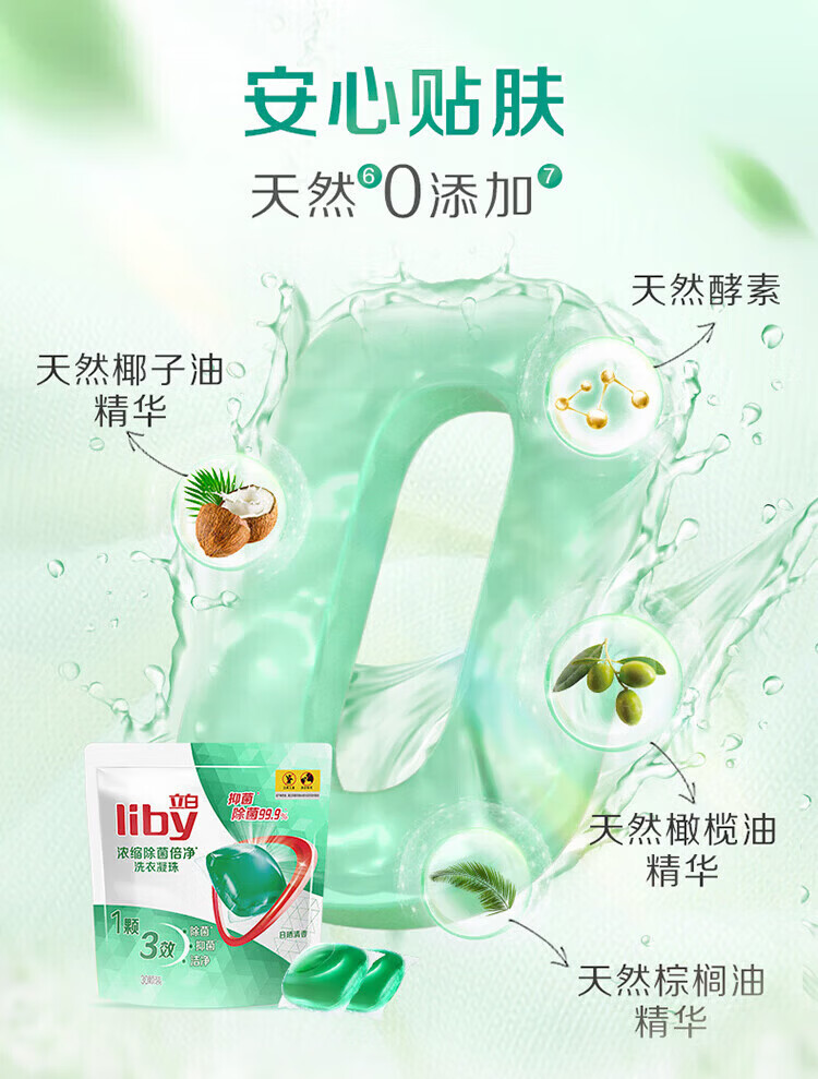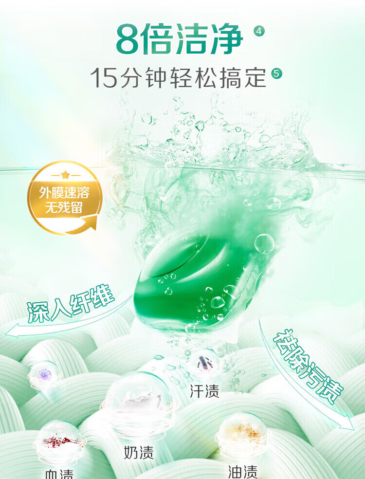 一颗搞定洗衣精致懒;99.999%除菌率72小时长效抑菌;去异味不伤衣如日晒般淡雅清香;4步速溶易漂15分钟快洗无残留