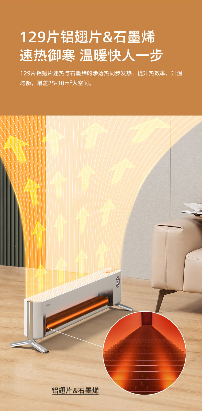 飞利浦石墨烯取暖器;干衣暖室,一开整屋入春;黑科技·石墨烯散发远红外光波