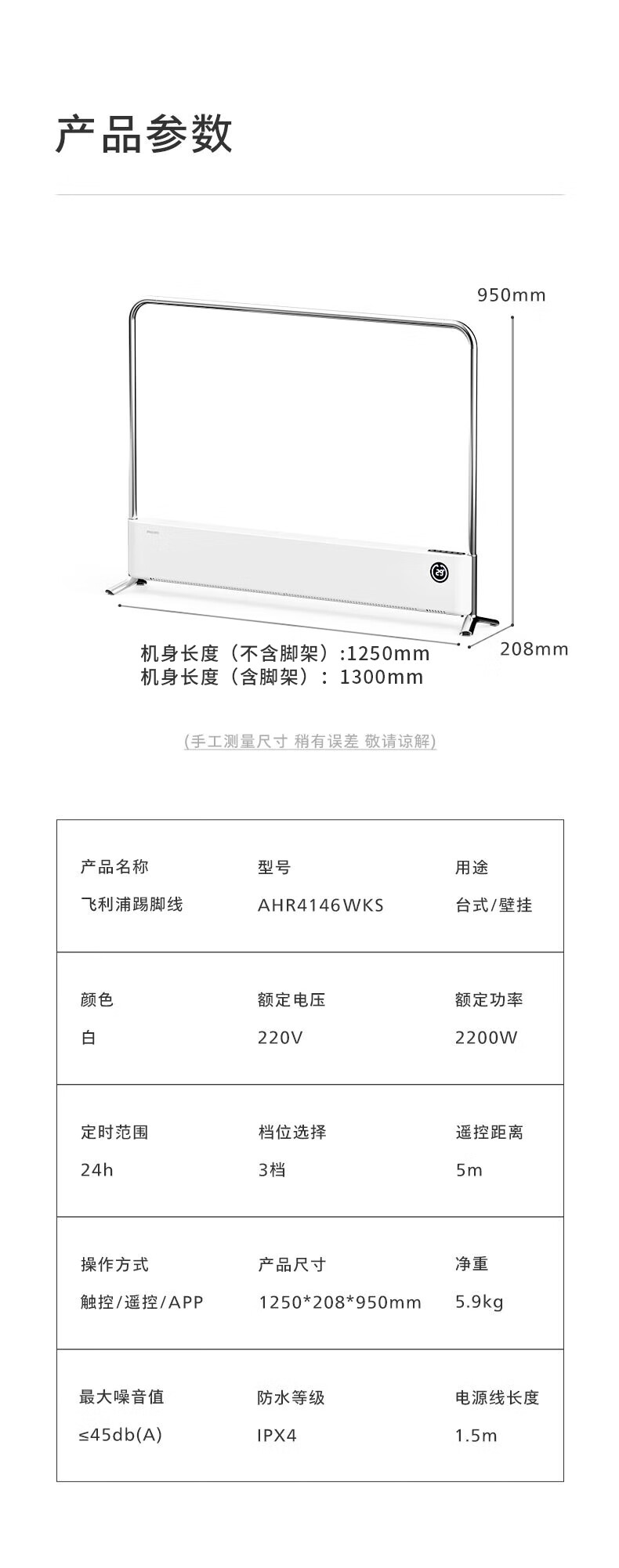 飞利浦 石墨烯踢脚线取暖器家用电器AHR4146WKS