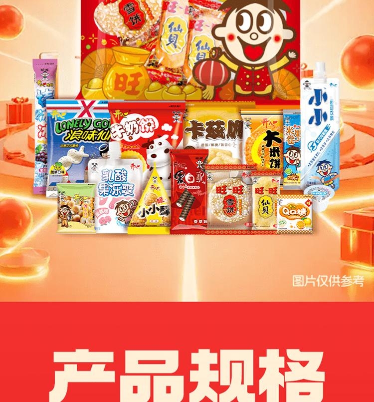礼旺意更旺,旺旺大礼包;喜庆;好吃不贵,儿时的味道