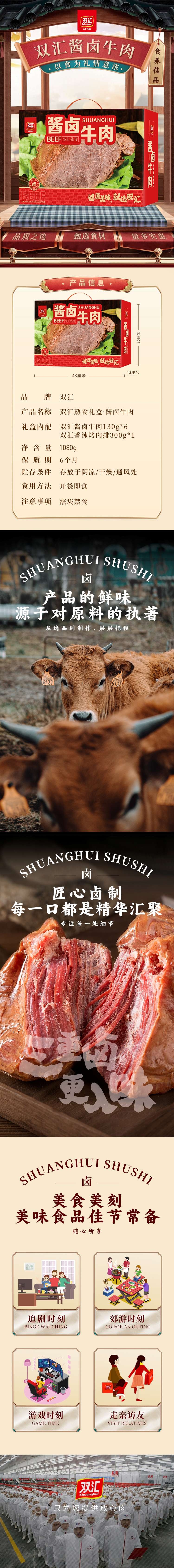 内配:双汇酱卤牛肉130g*6 双汇香辣烤肉排300g*1