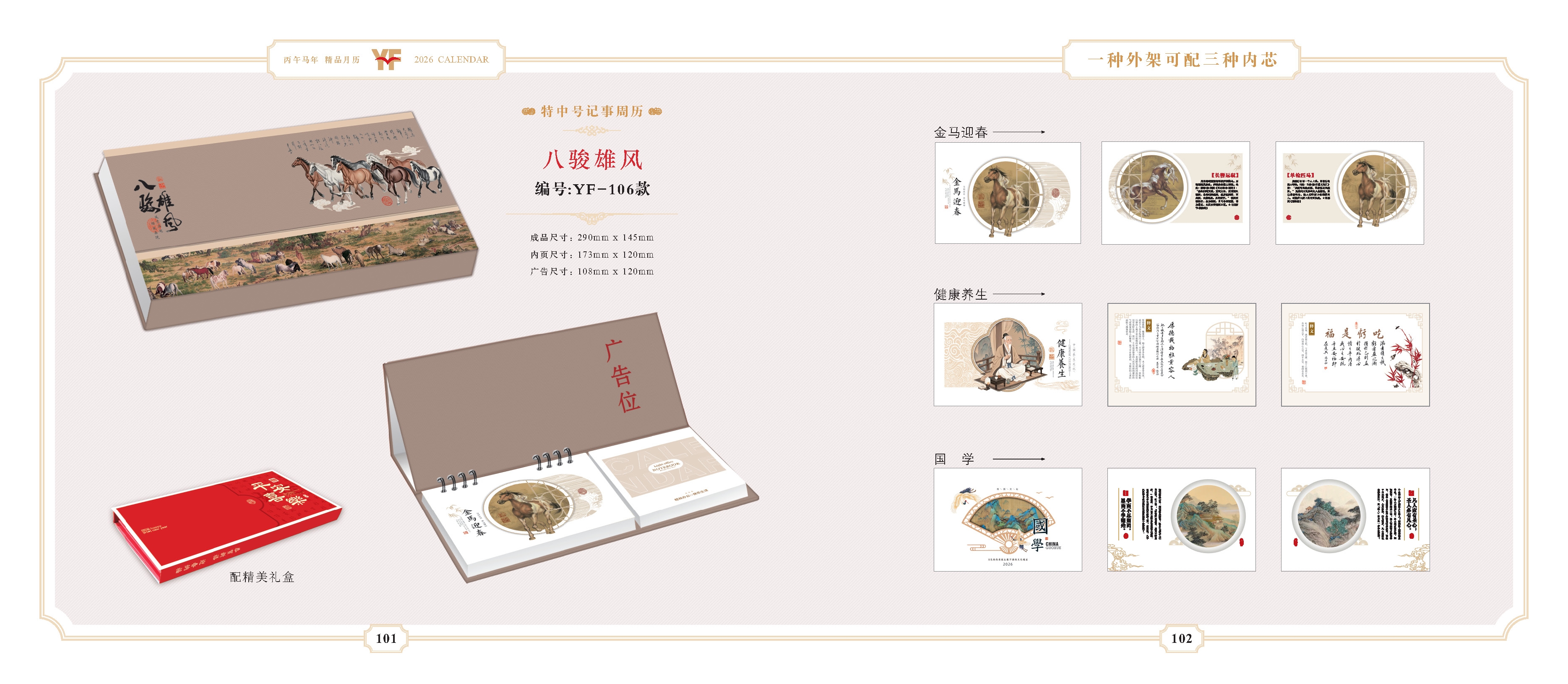 台挂历年年更换,换的是时间,不变的是情怀;每一本台挂历都记录着过去一年的点点滴滴;在亲朋好友之间,送上一本精美的台历