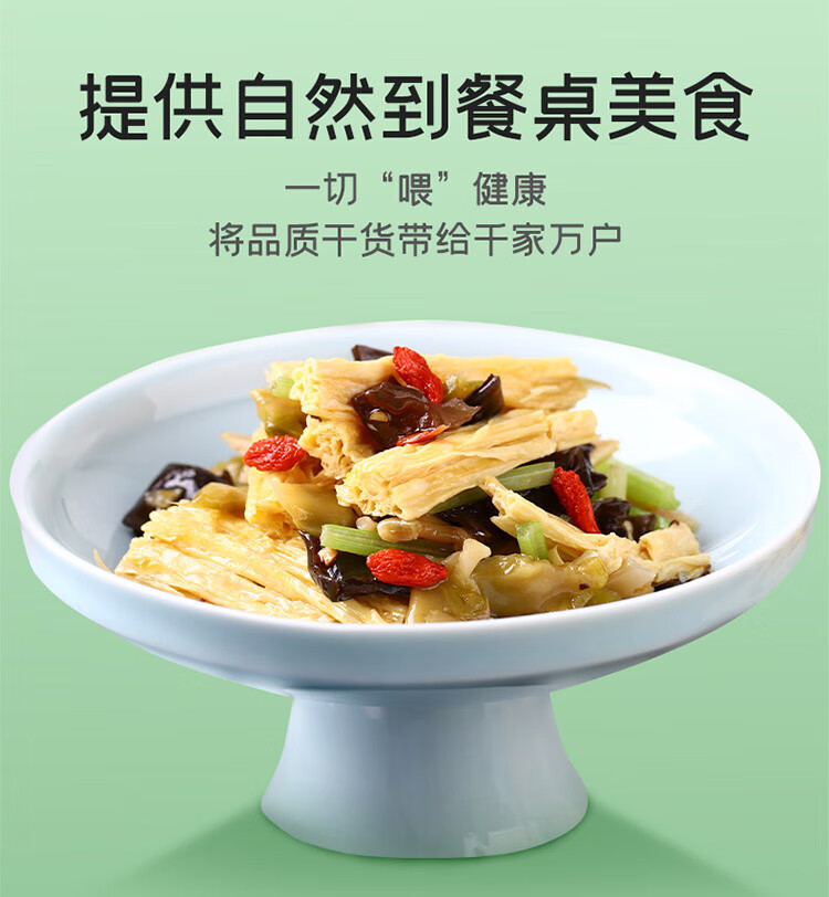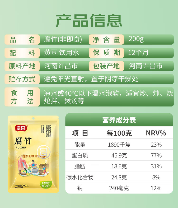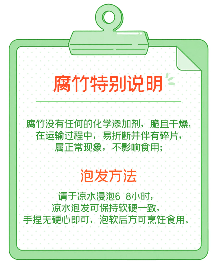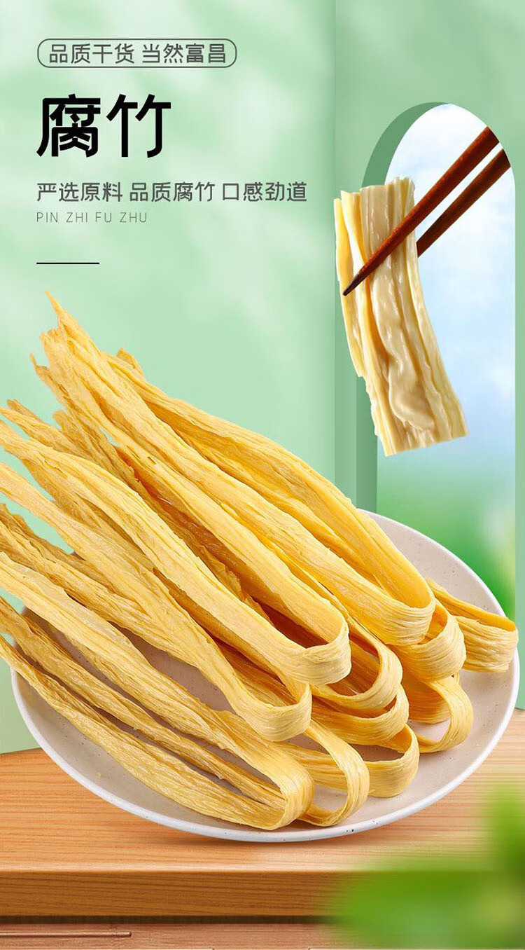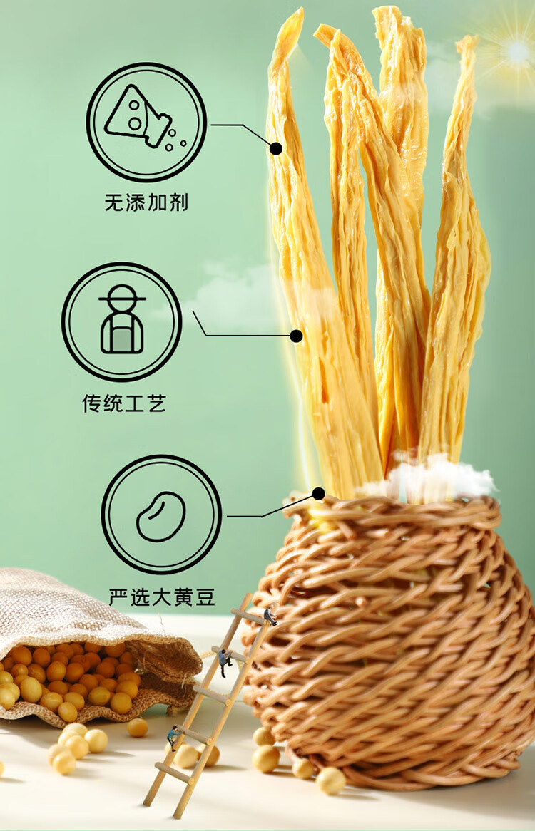 严选原料 品质腐竹 口感劲道;传统工艺 品味保障;严选大黄豆,无添加