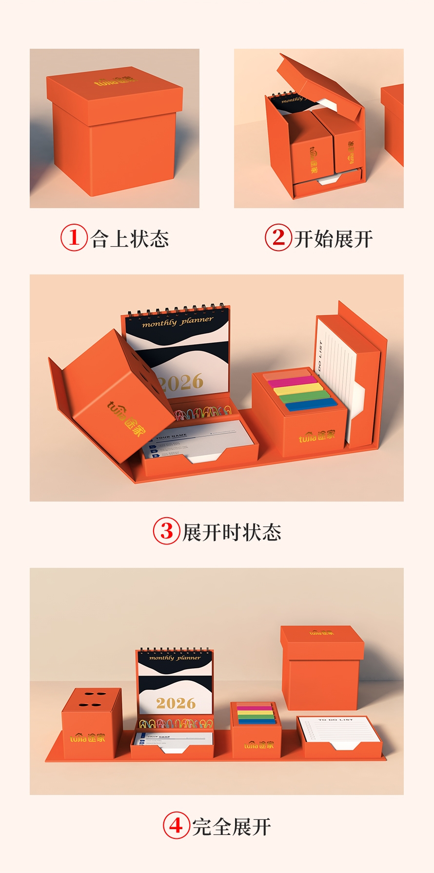 多功能创意台历;便签收纳组合型台历;实用笔筒设计