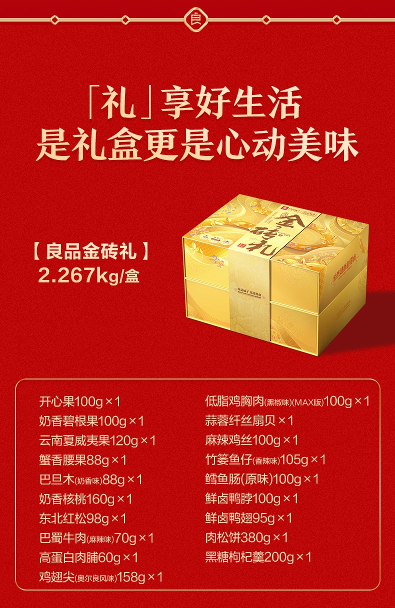 良品铺子 高蛋白金砖礼2267g