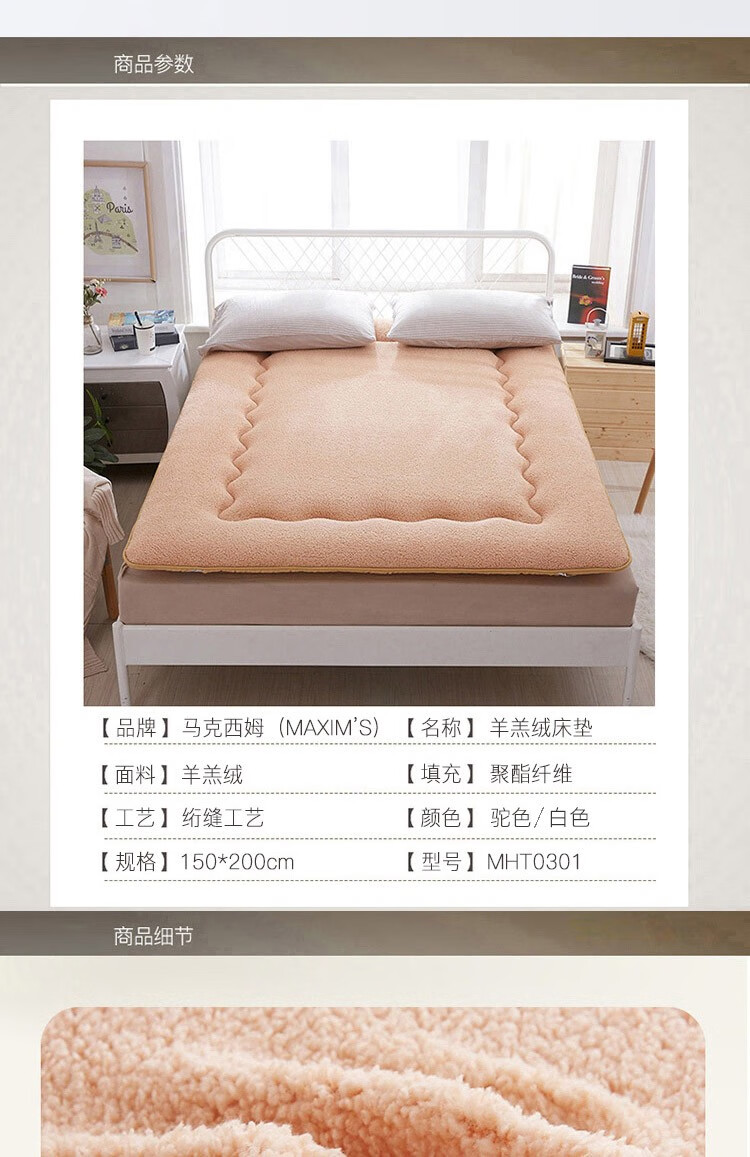马克西姆 1.5米羊羔绒床垫白色MHT0301