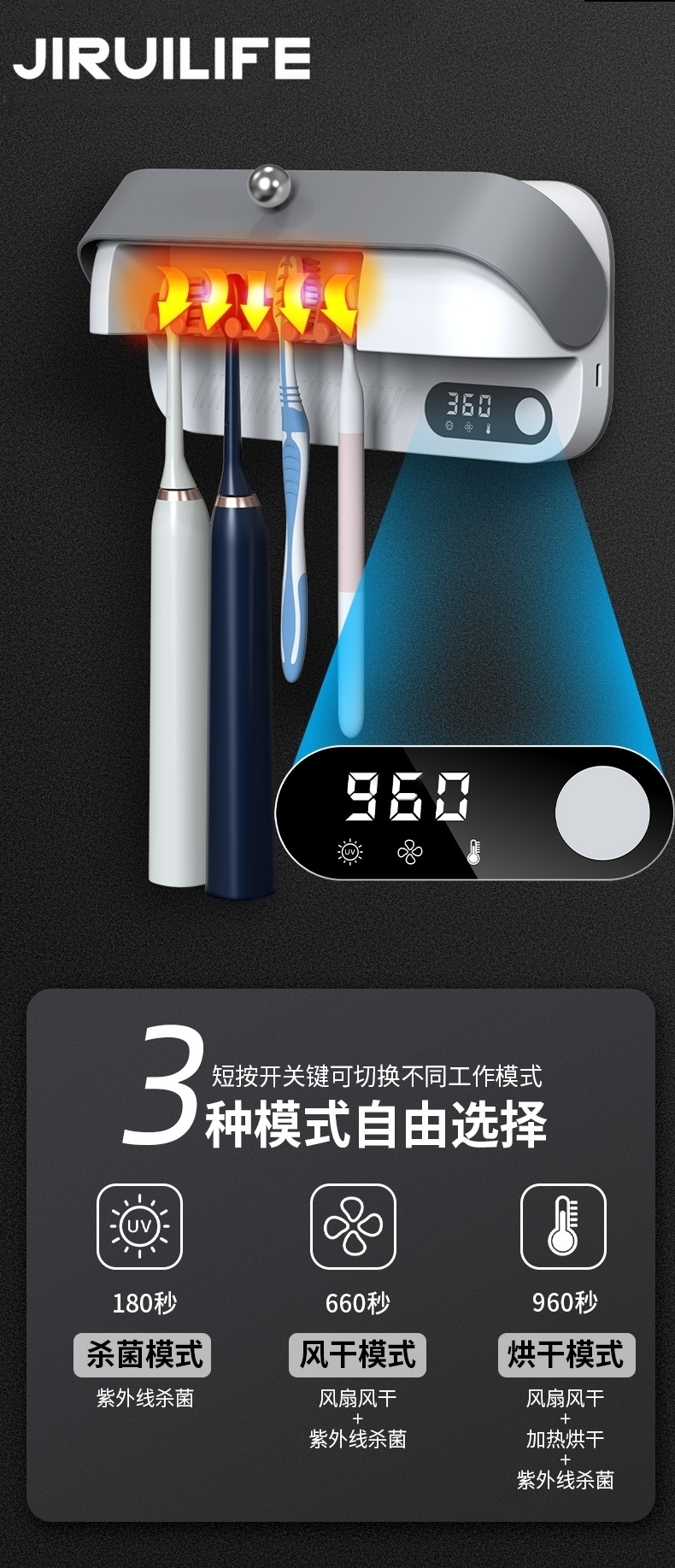 JIRUILIFE 紫外线牙刷烘干风干器JR-X01