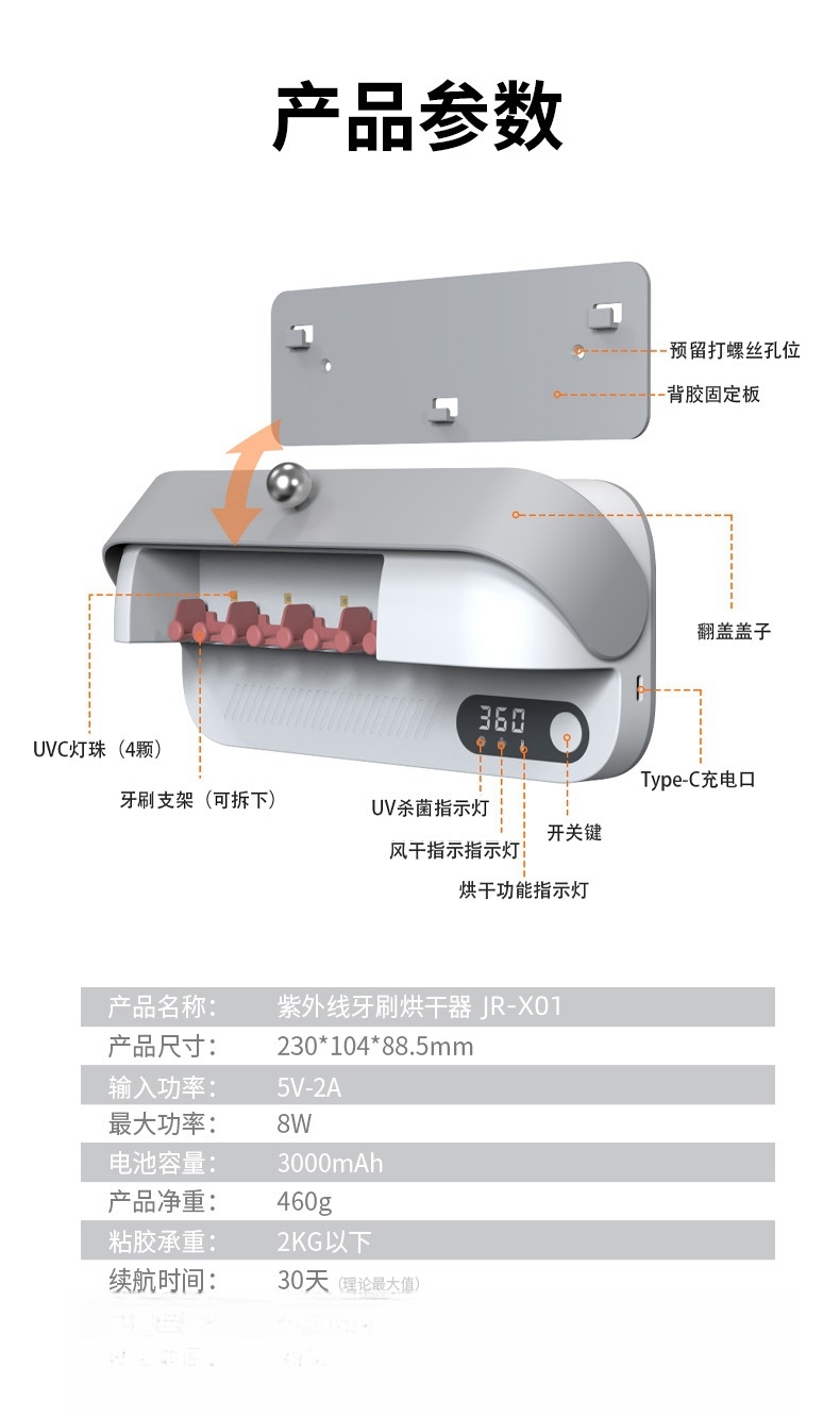 产品名称:几锐紫外线牙刷烘干器