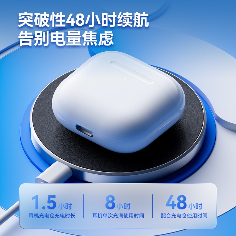 全新蓝牙5.4芯片 传输更稳不掉线 ;混合式智能降噪技术 静听好声音;2.9g舒适半入耳 久戴不痛