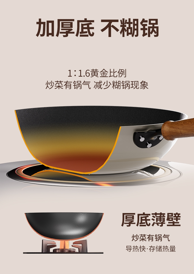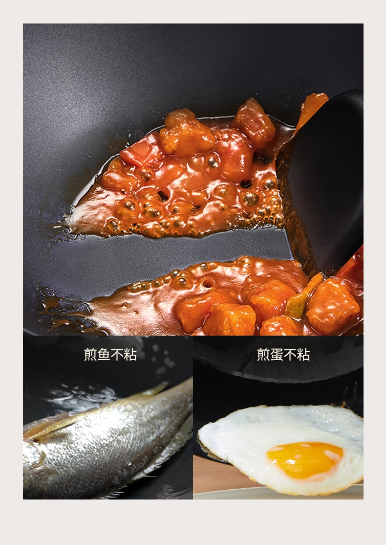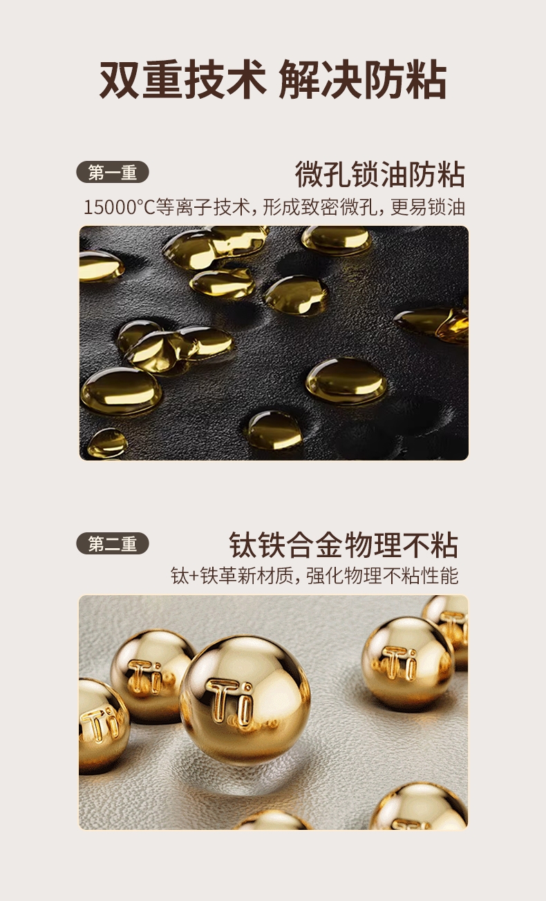 特点:少油烟、不易粘锅,无涂层,不生锈