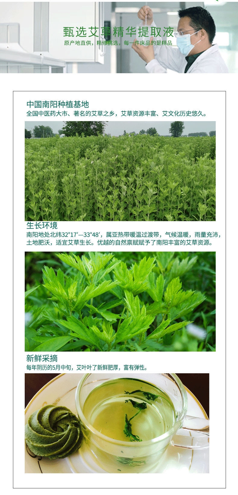 甄选艾草精华提取液;艾草植物健康驱蚊,古人喜以艾绒入枕;今提取艾草精华,淡淡艾香安全呵护驱避蚊虫