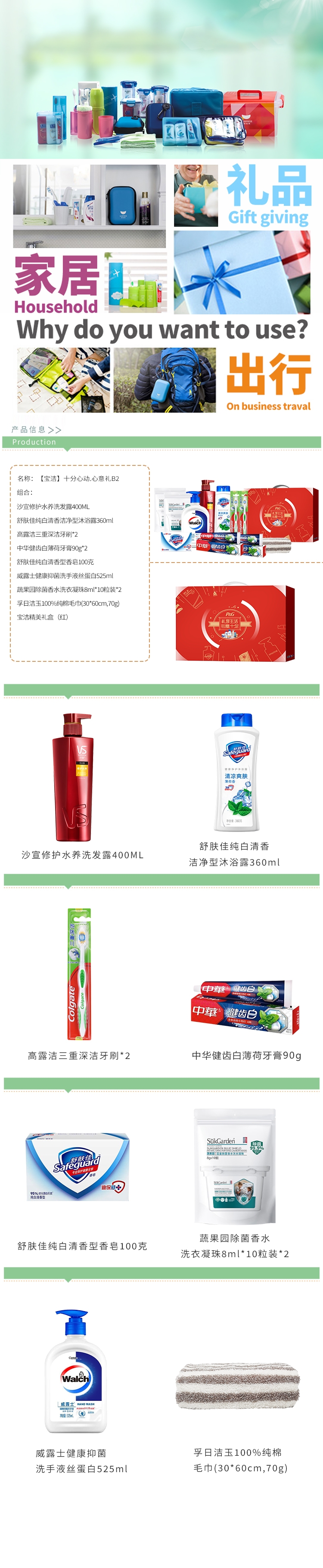 宝洁定制洗护礼盒; 产品丰富多样,礼箱随心组合,价位因需而定;商务送礼、单位福利