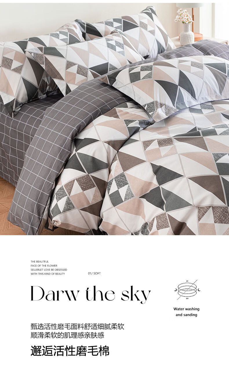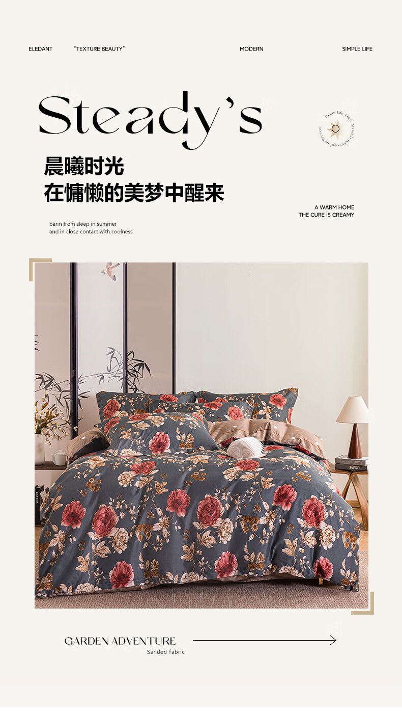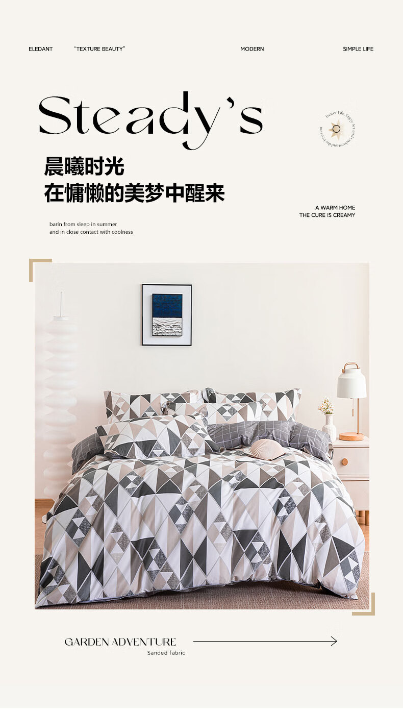 甄选生态锦棉亲肤面料;居家品质,感软糯亲肤舒适 ;透气不易闷热