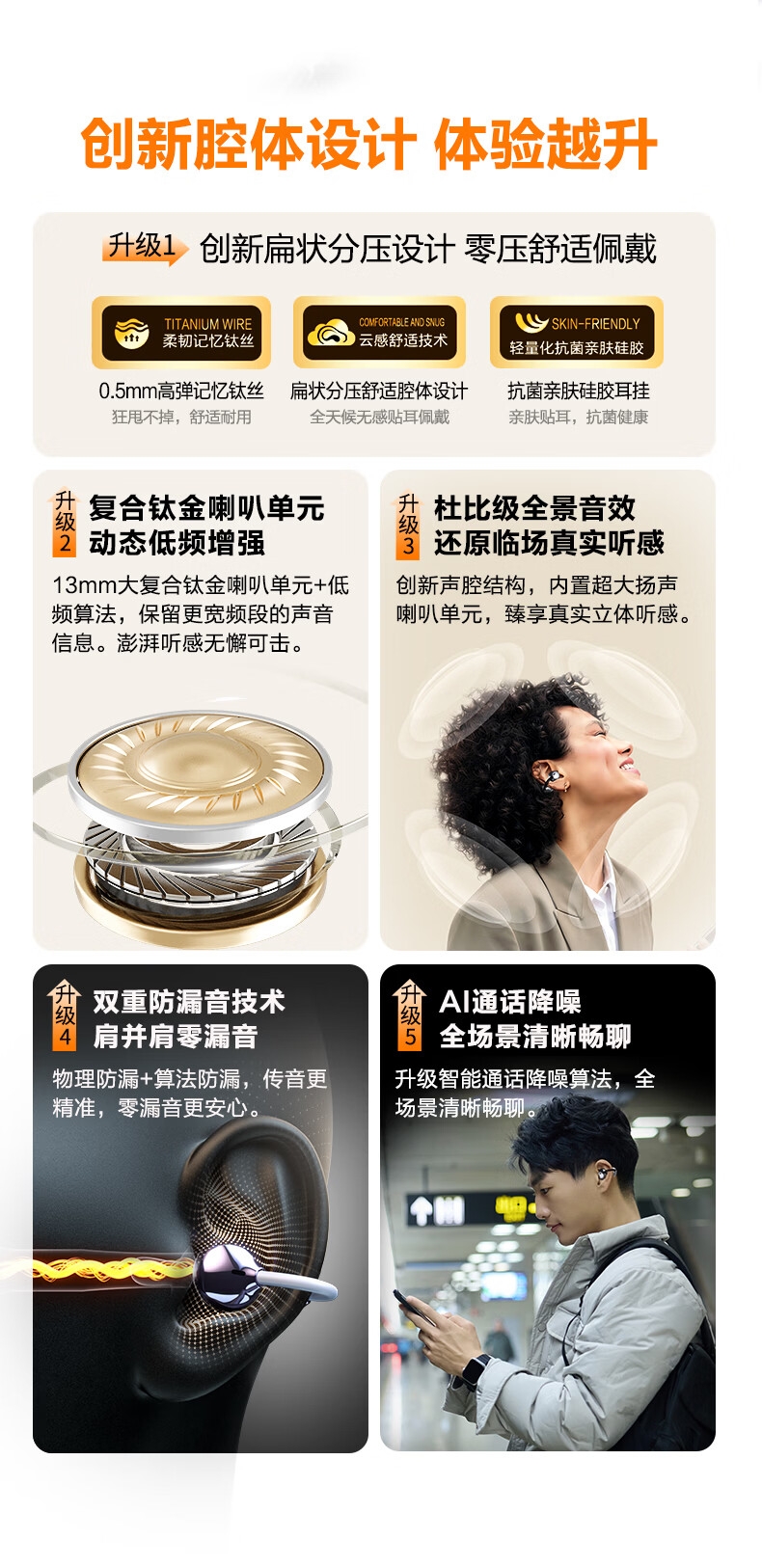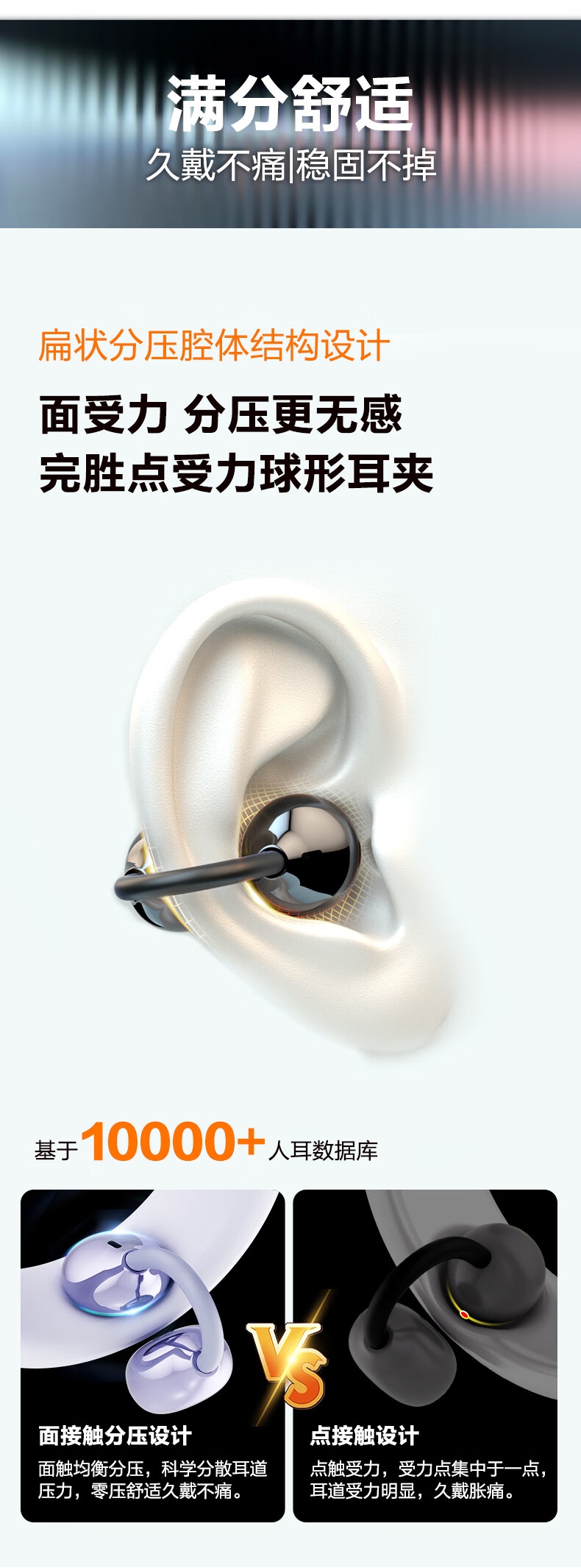 夹耳式佩戴;久戴不痛|稳固不掉;沉浸舒听好音质