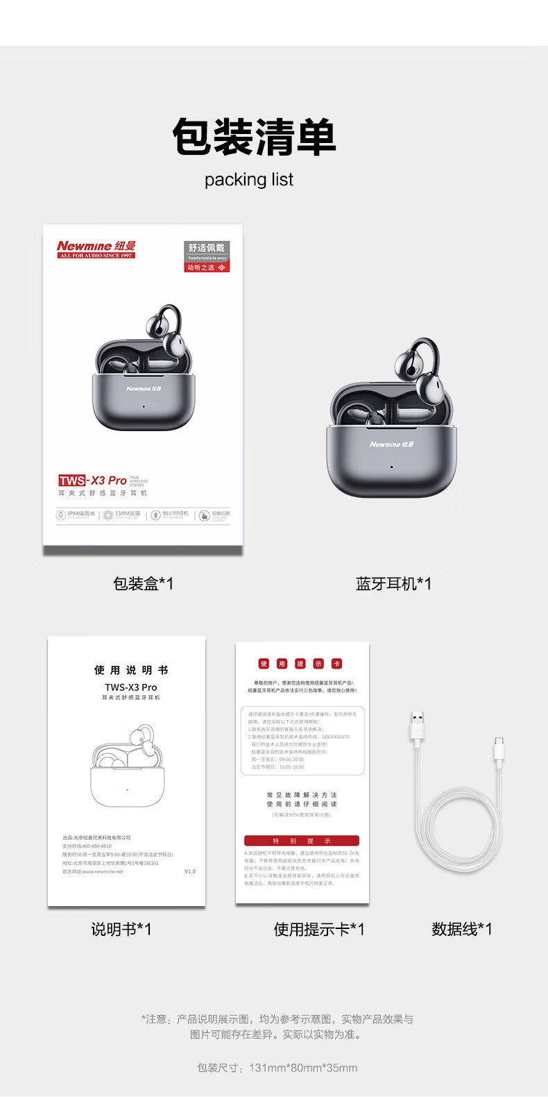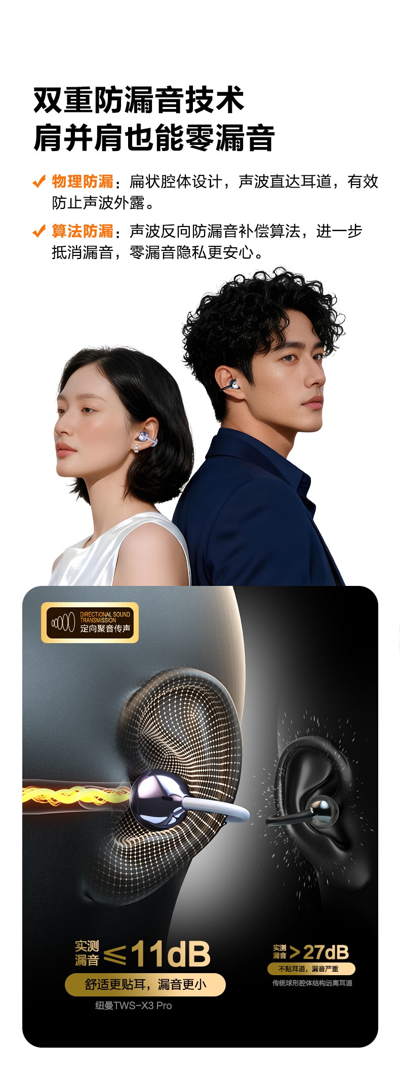纽曼 蓝牙耳机耳夹式骨传导概念开放式X3pro