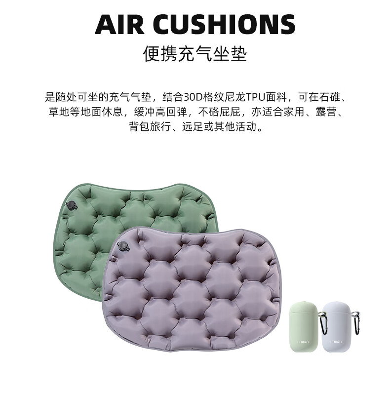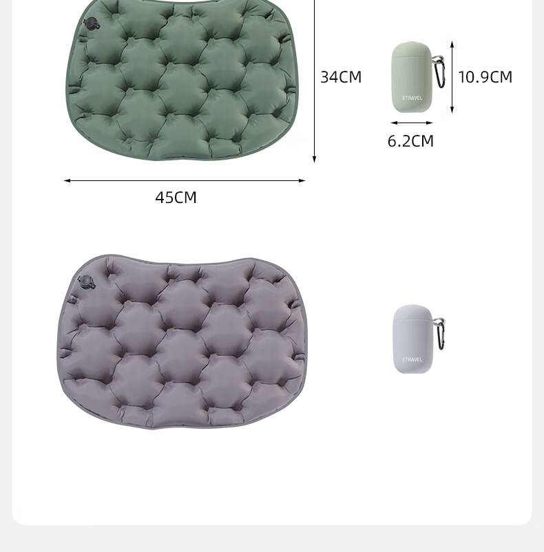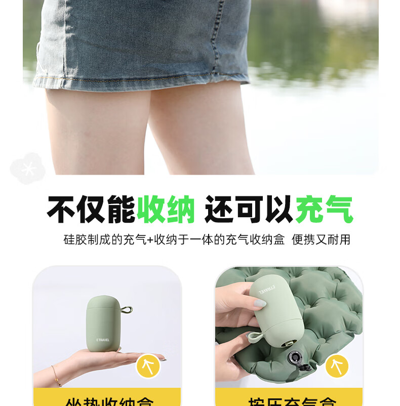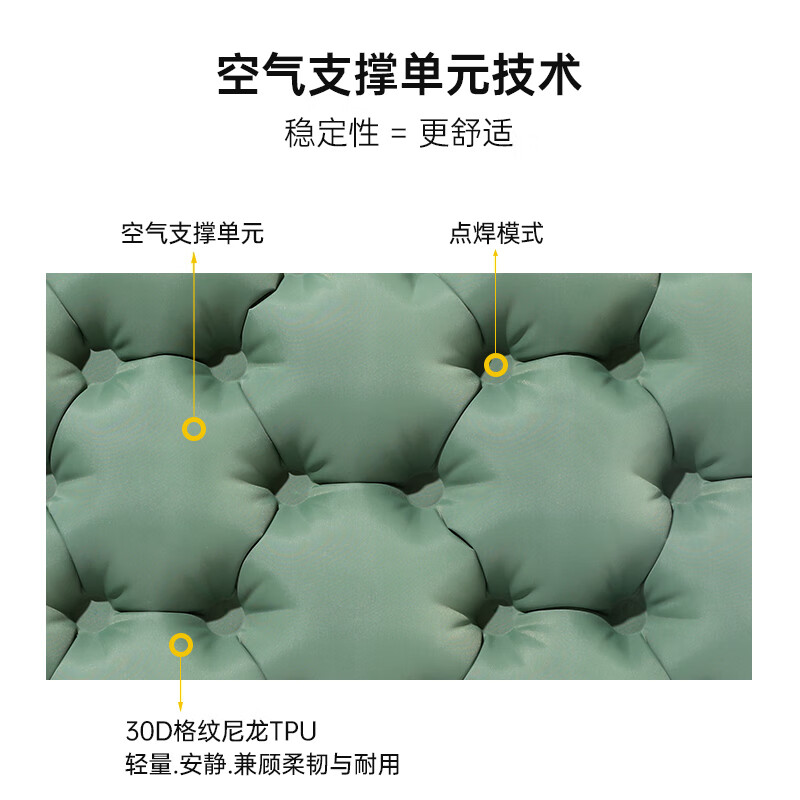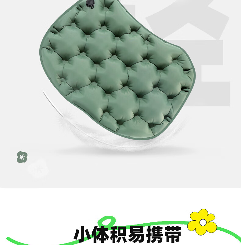 轻盈手感,徒步登山更轻松;小体积易携带背包侧边轻松收纳;不仅能收纳还可以充气;30D格纹龙TPU耐磨不漏气