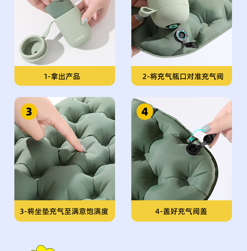 易旅 户外充气坐垫绿色灰色ELZD01