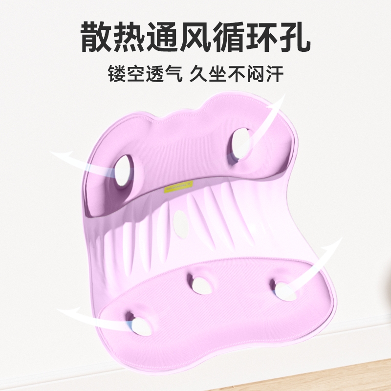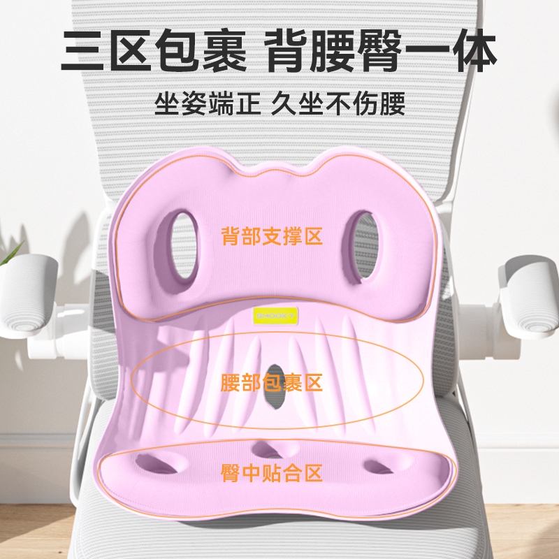 支撑腰背,贴合支撑减少压力。;三区包裹,背腰臀一体。;散热通风孔,镂空透气,久坐不闷汗