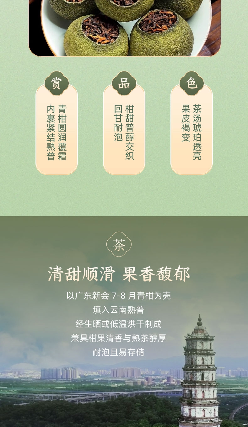 新会梅江产区出品;每罐1:1对应国家地理标志溯源码;干仓存放,陈化五年皮