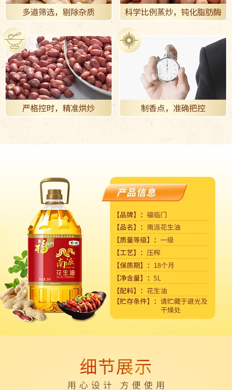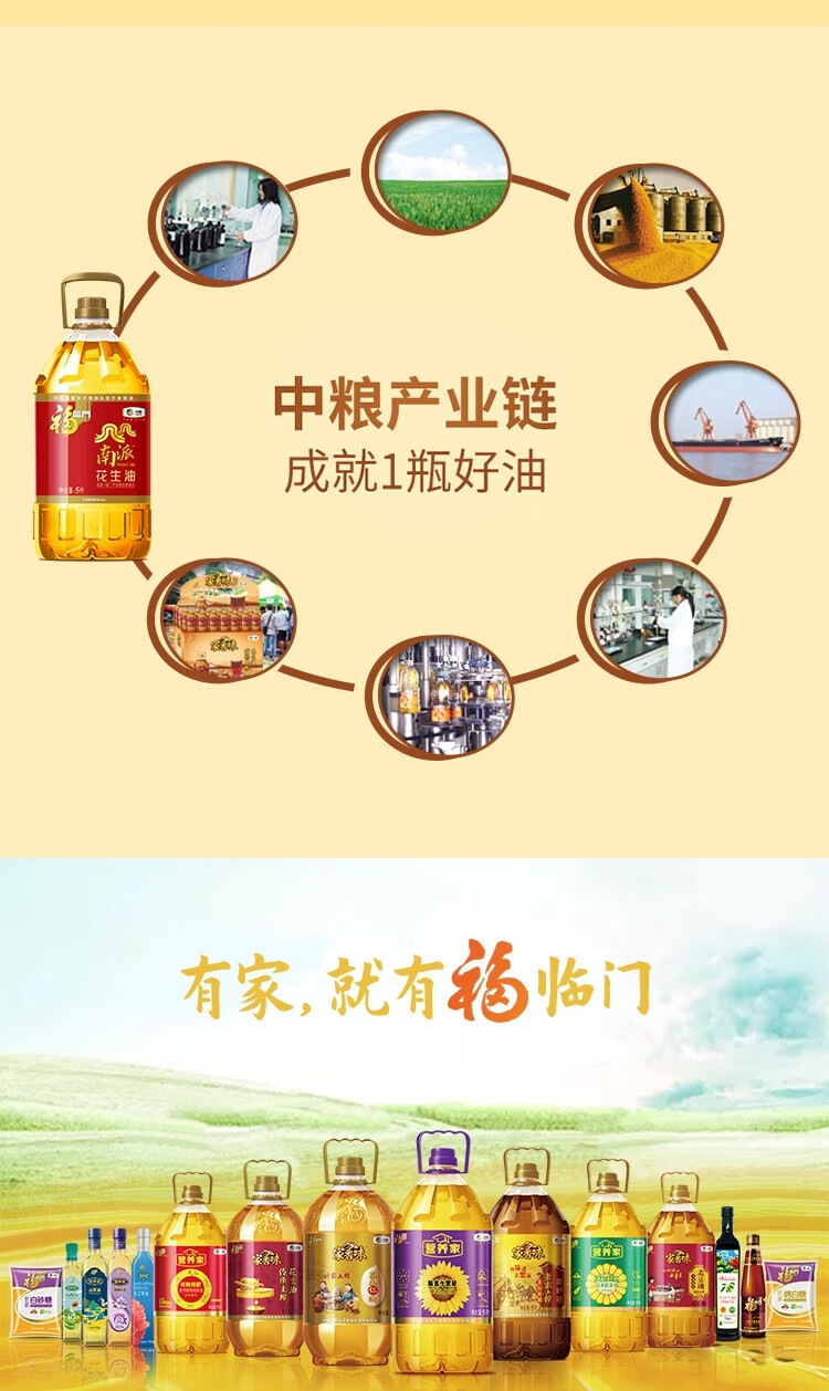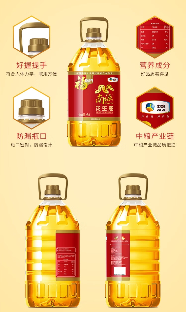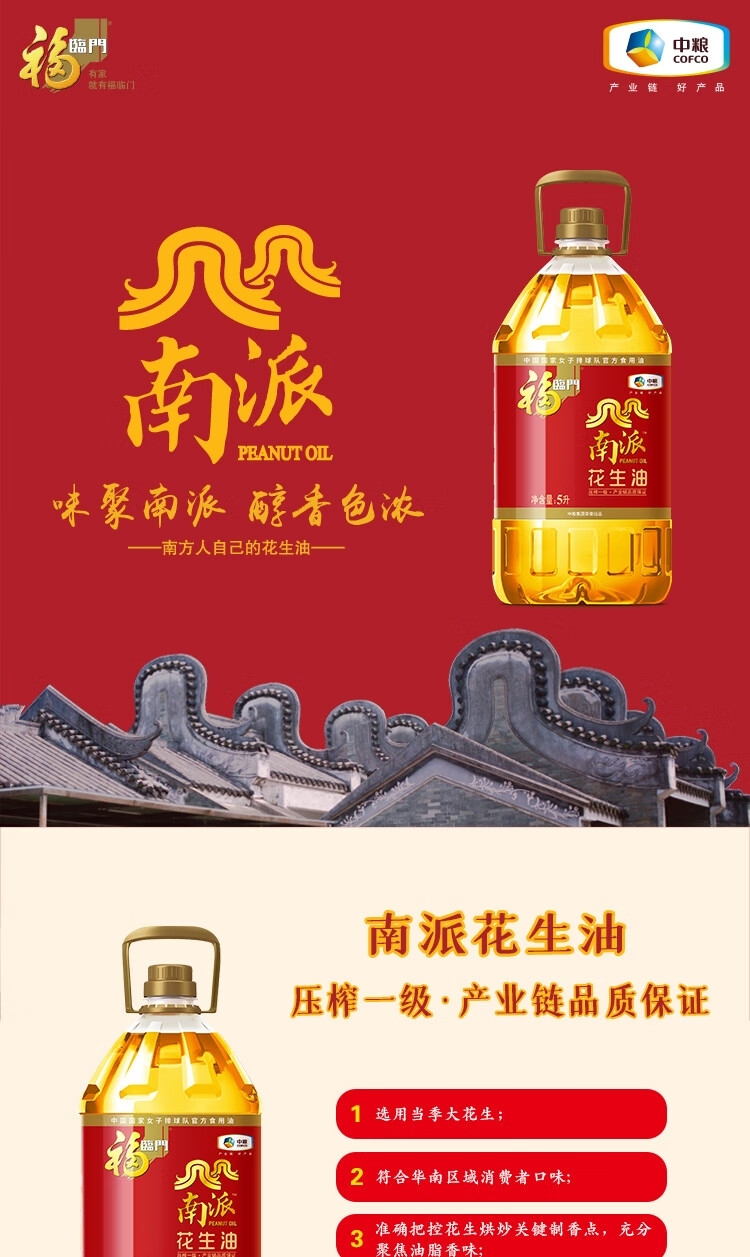 福临门 中粮南派压榨一级花生油5L