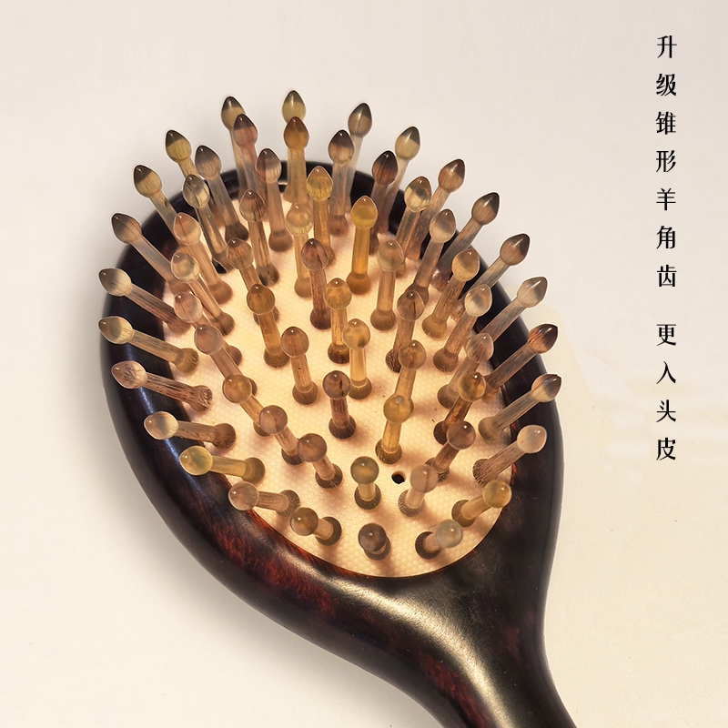 无漆工艺,匠心打磨出光泽;羊角亲肤,滋养头皮,摩擦不起电;檀木水笔,用久了可包浆