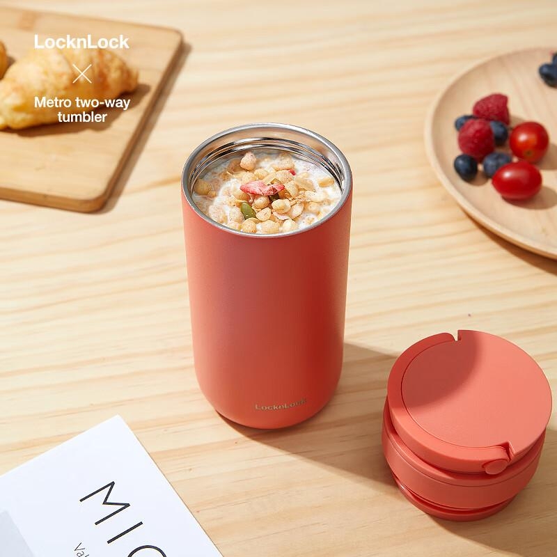 使用两层杯盖,可做咖啡杯,办公或者家用,饮水更方便;单独使用上盖可盛放粥、汤等,自带健康早餐去上班。;隐藏式硅胶提手,手感舒适,随手可拎,外出携带方便。;可90°翻折,不用时收起,节省空间,可拆式结构清洗
