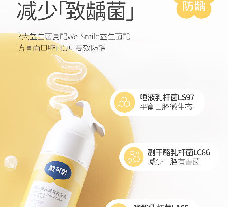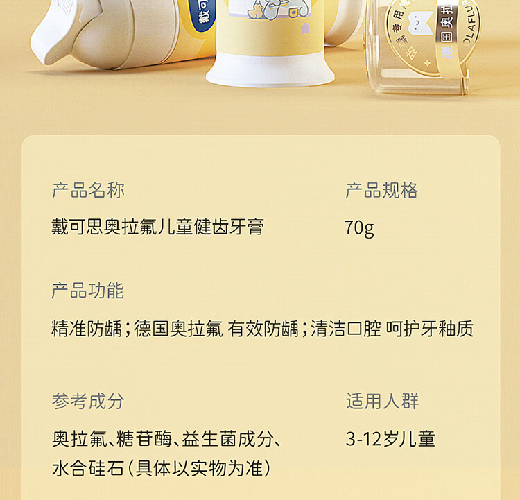 戴可思 奥拉氟儿童健齿含氟牙膏70g