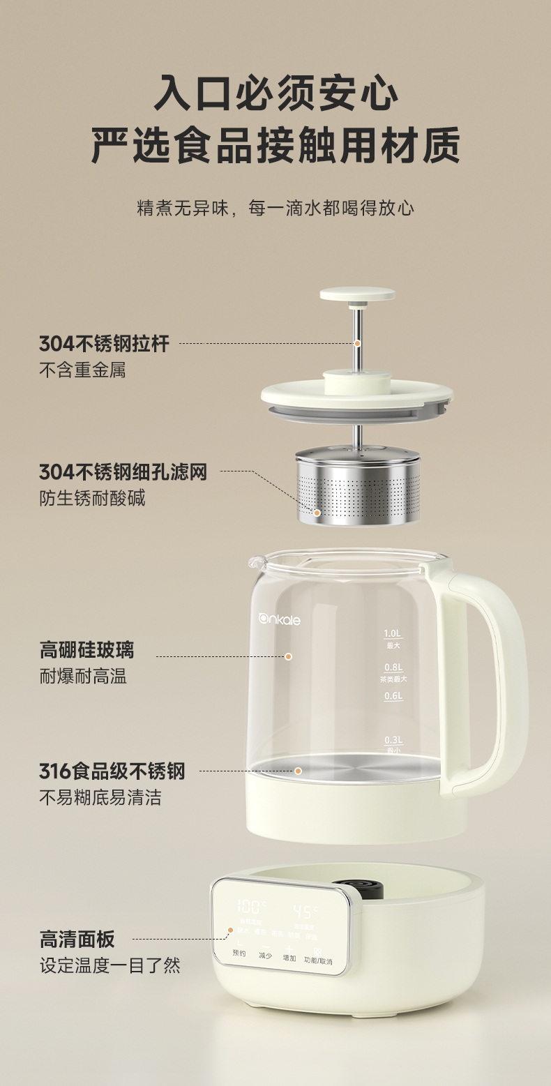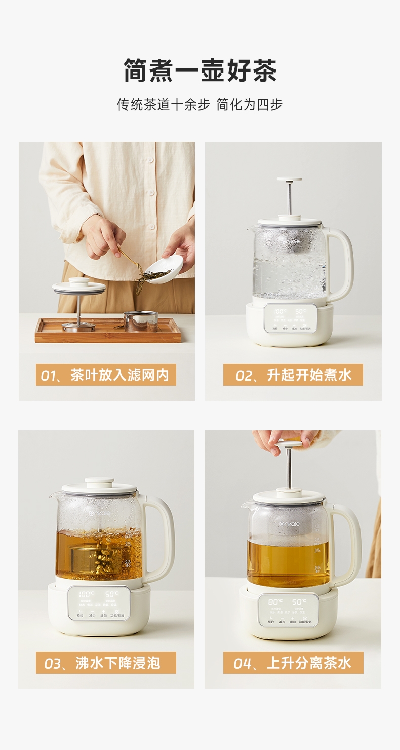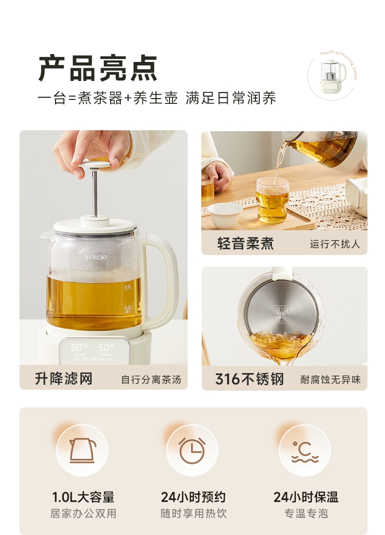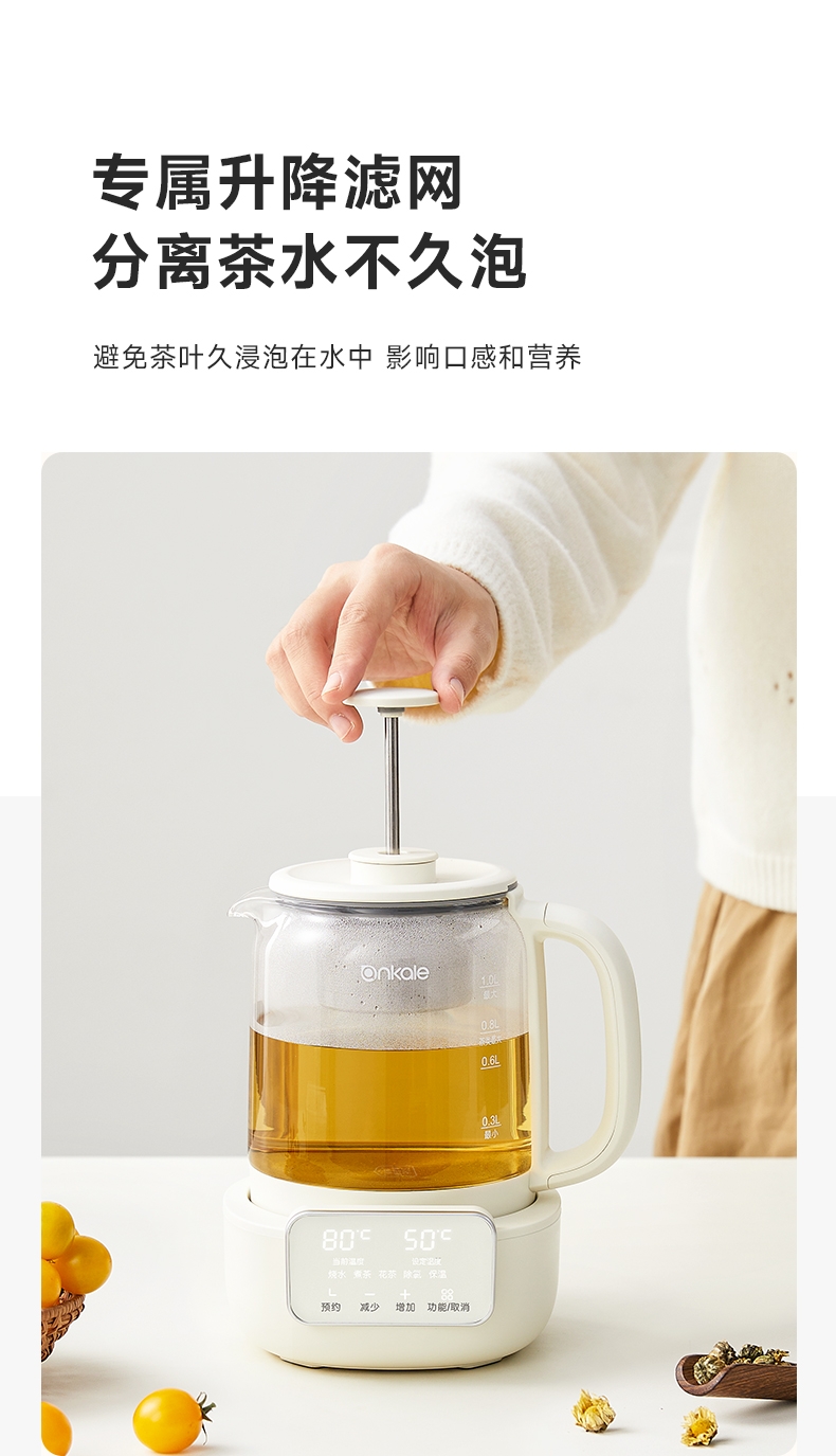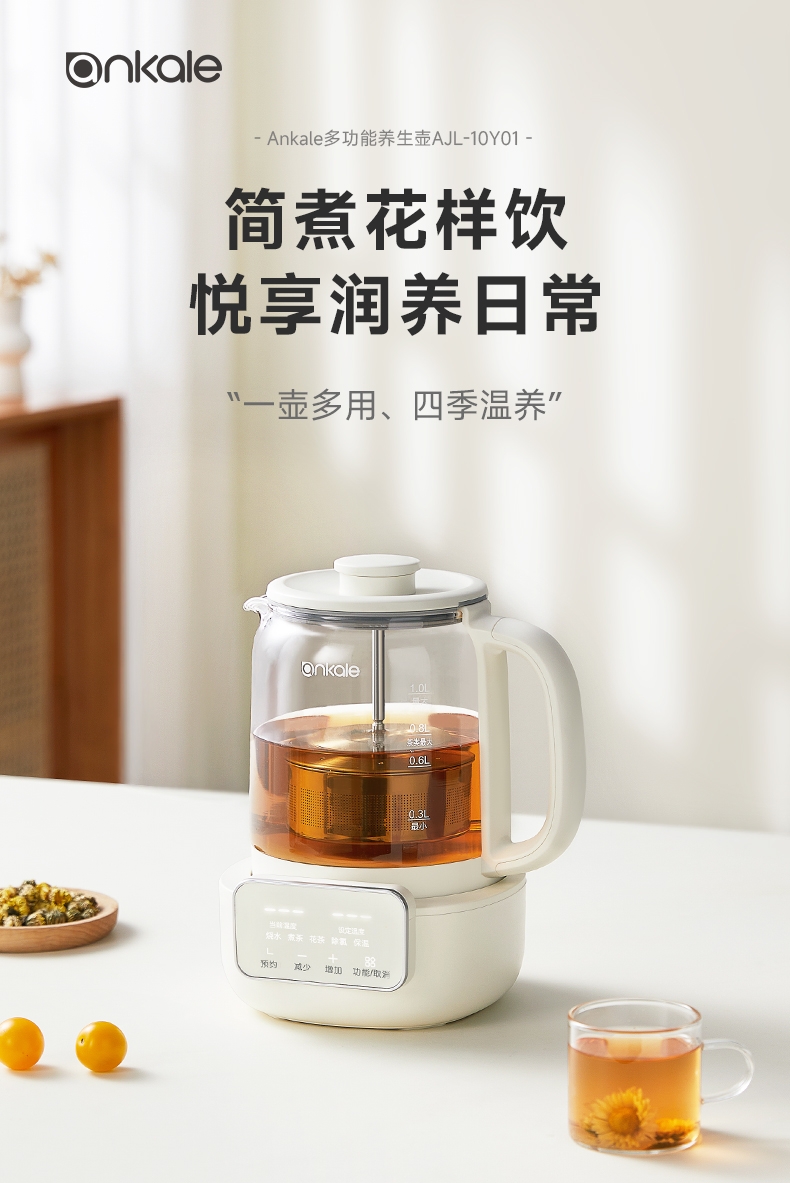 ankale 可调节升降茶漏1L养生壶AJL-10Y01