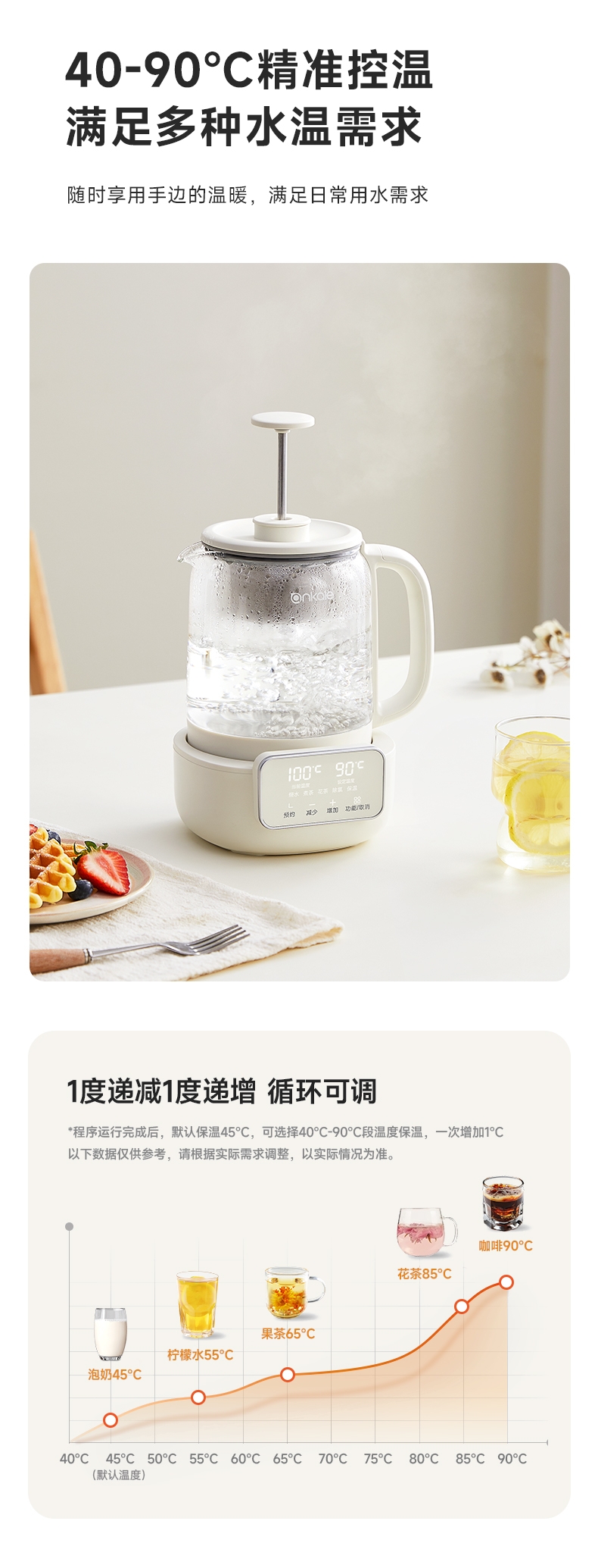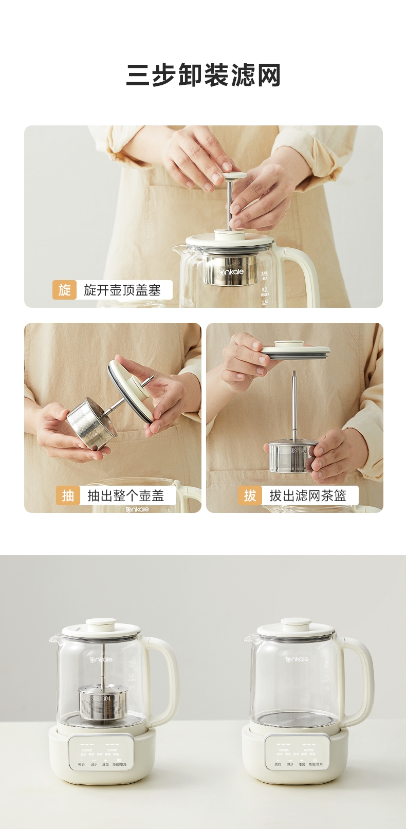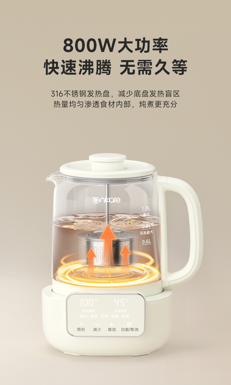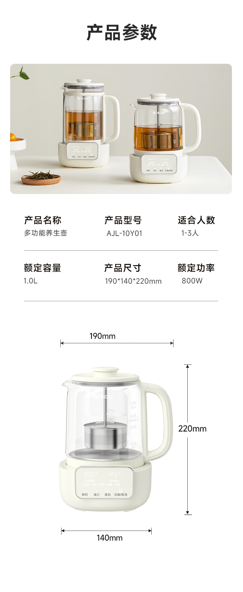 ankale 可调节升降茶漏1L养生壶AJL-10Y01