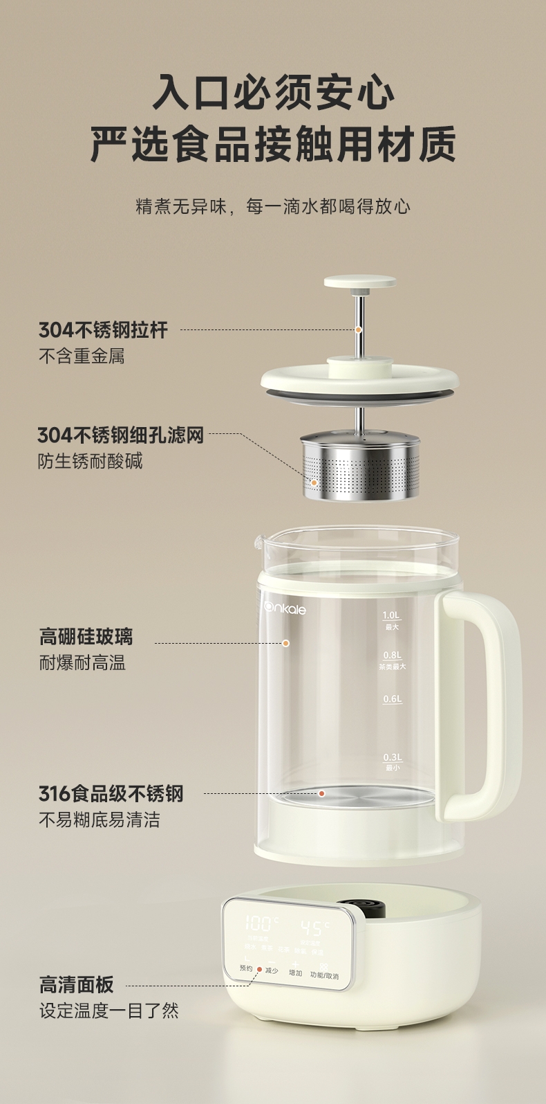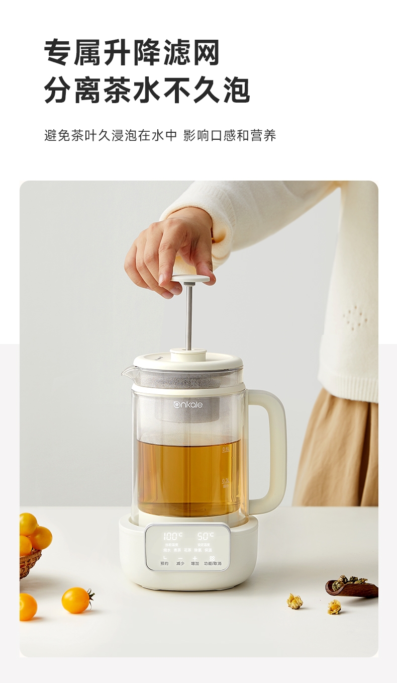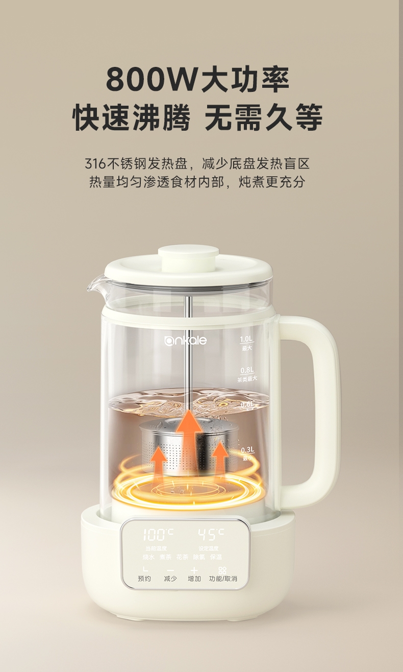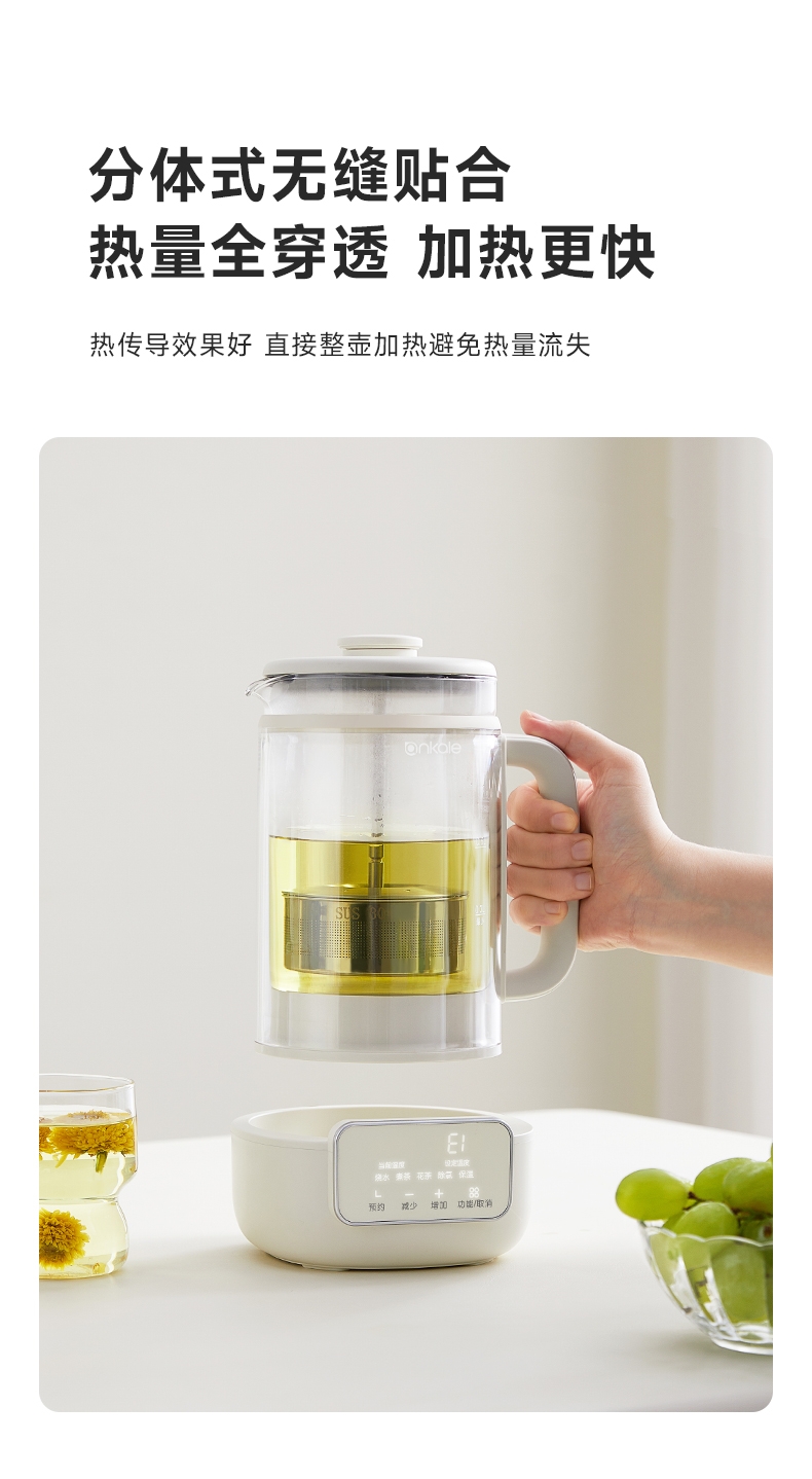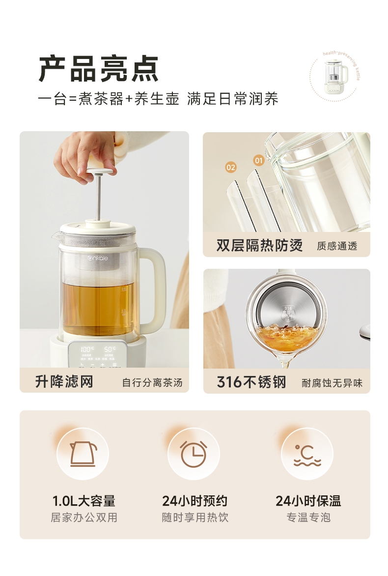 ankale 316不锈钢升降茶漏1L养生壶AJL-10Y02