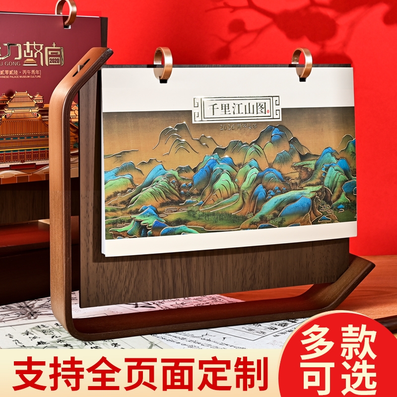 木质台历定制广告2026马年;企业商务桌面摆件;企业定制 logo