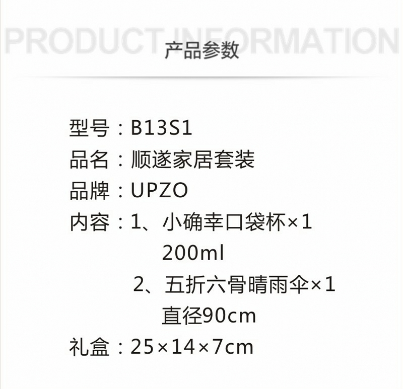 配置清单:小确幸保温杯*1、五折六骨晴雨伞*1