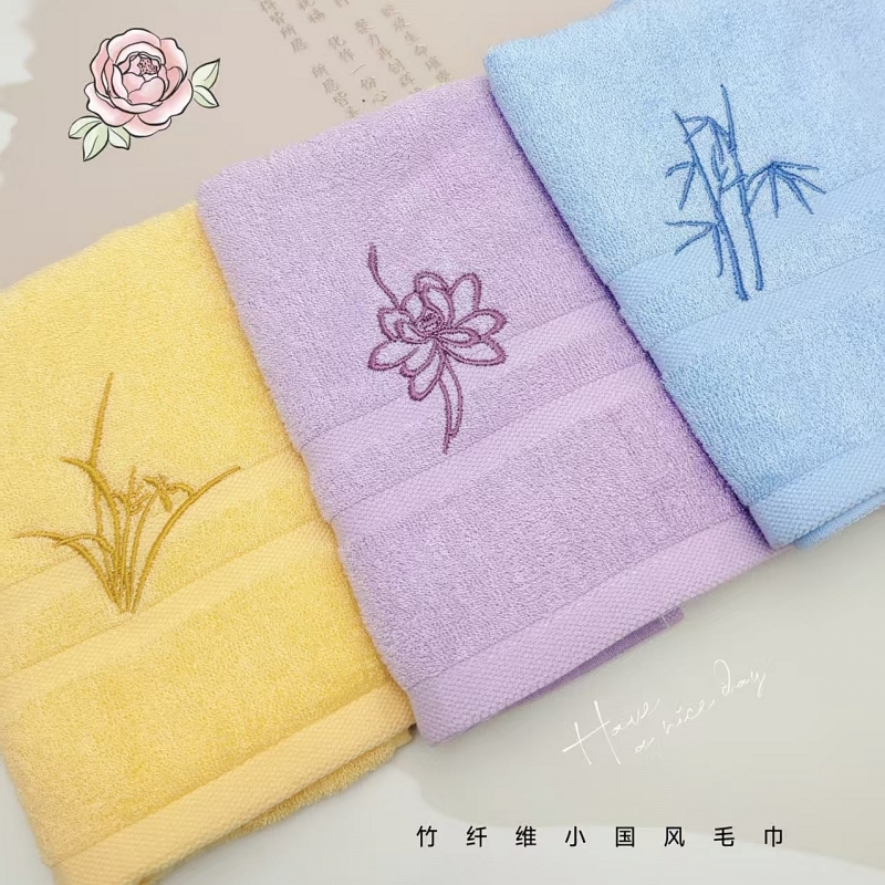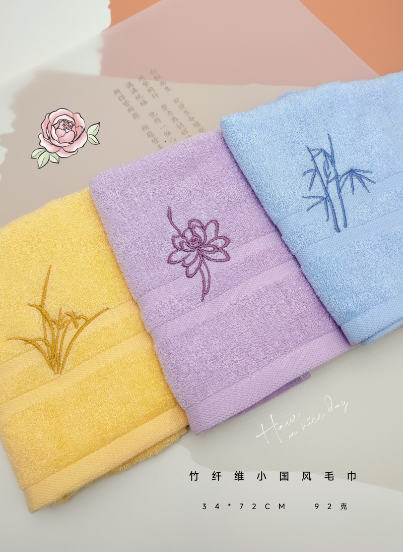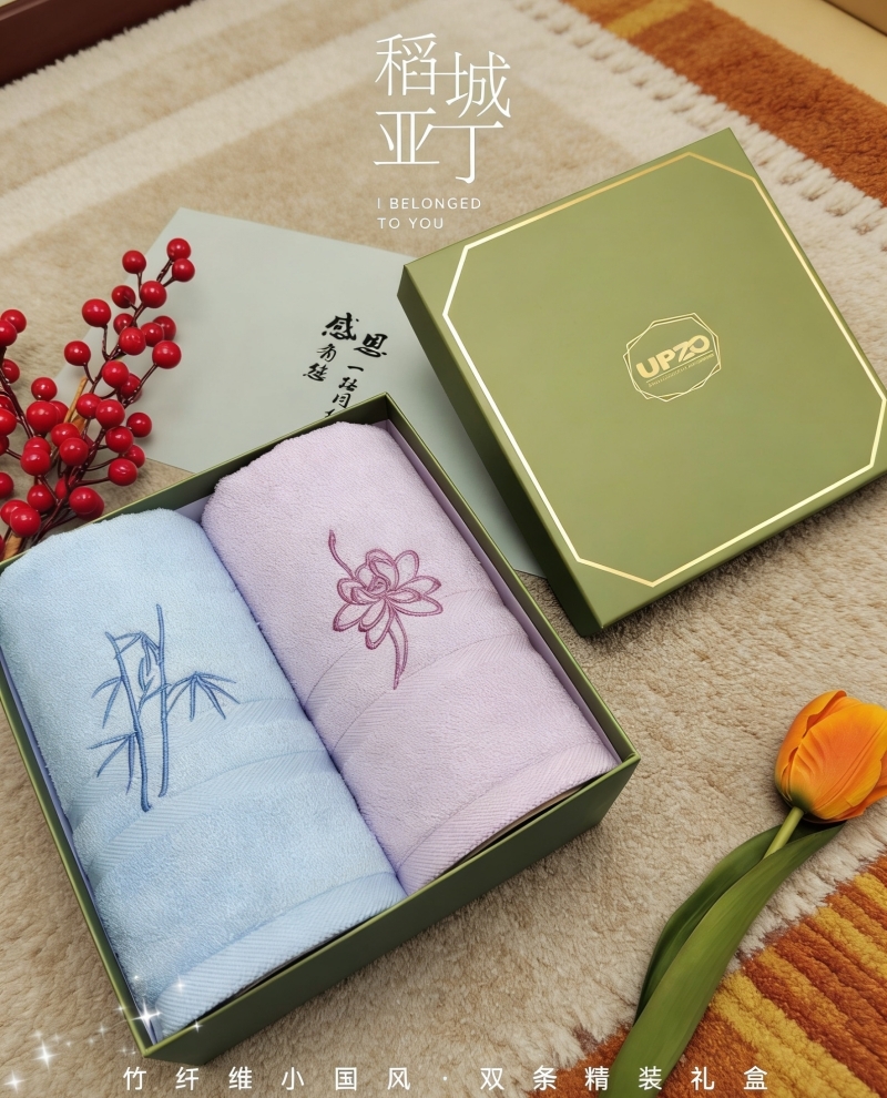 竹纤维柔软细腻 舒服度高;搭配效果风刺绣风 美化家居生活;天地盖礼盒加手提袋设计