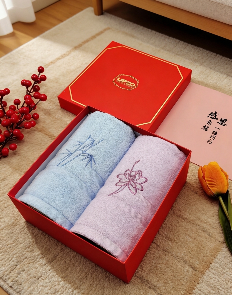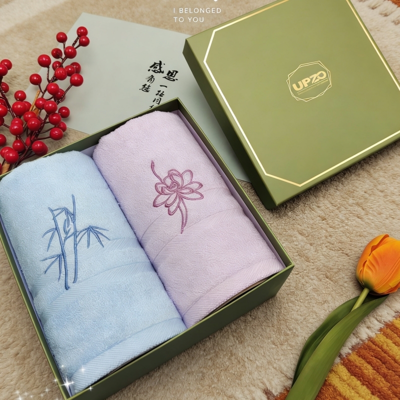 优品尚竹 竹纤维小国风毛巾双条精装礼盒XGF-012
