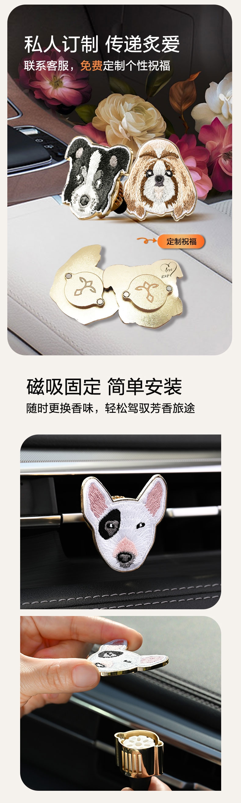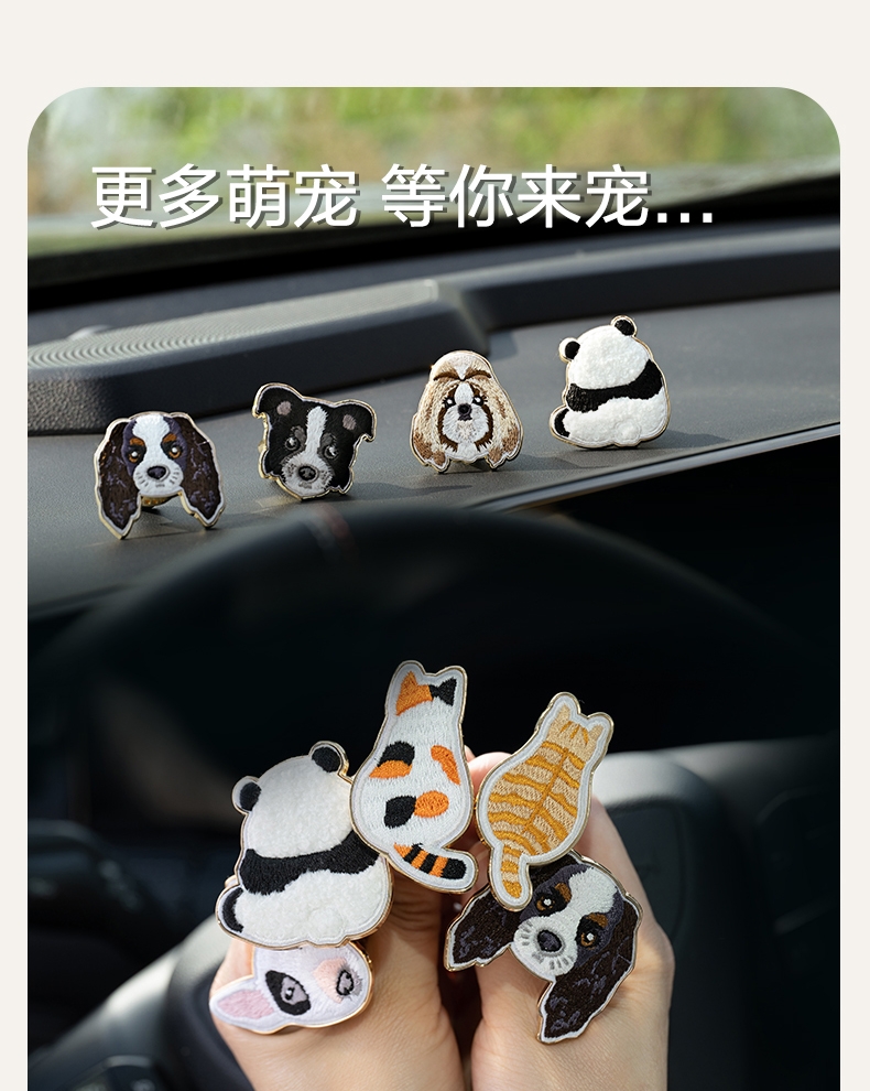 配置清单:锌合金材质,高精刺绣图案,包装内含高分子固体香块