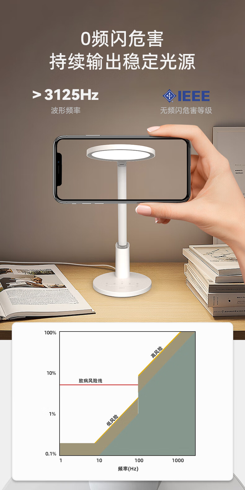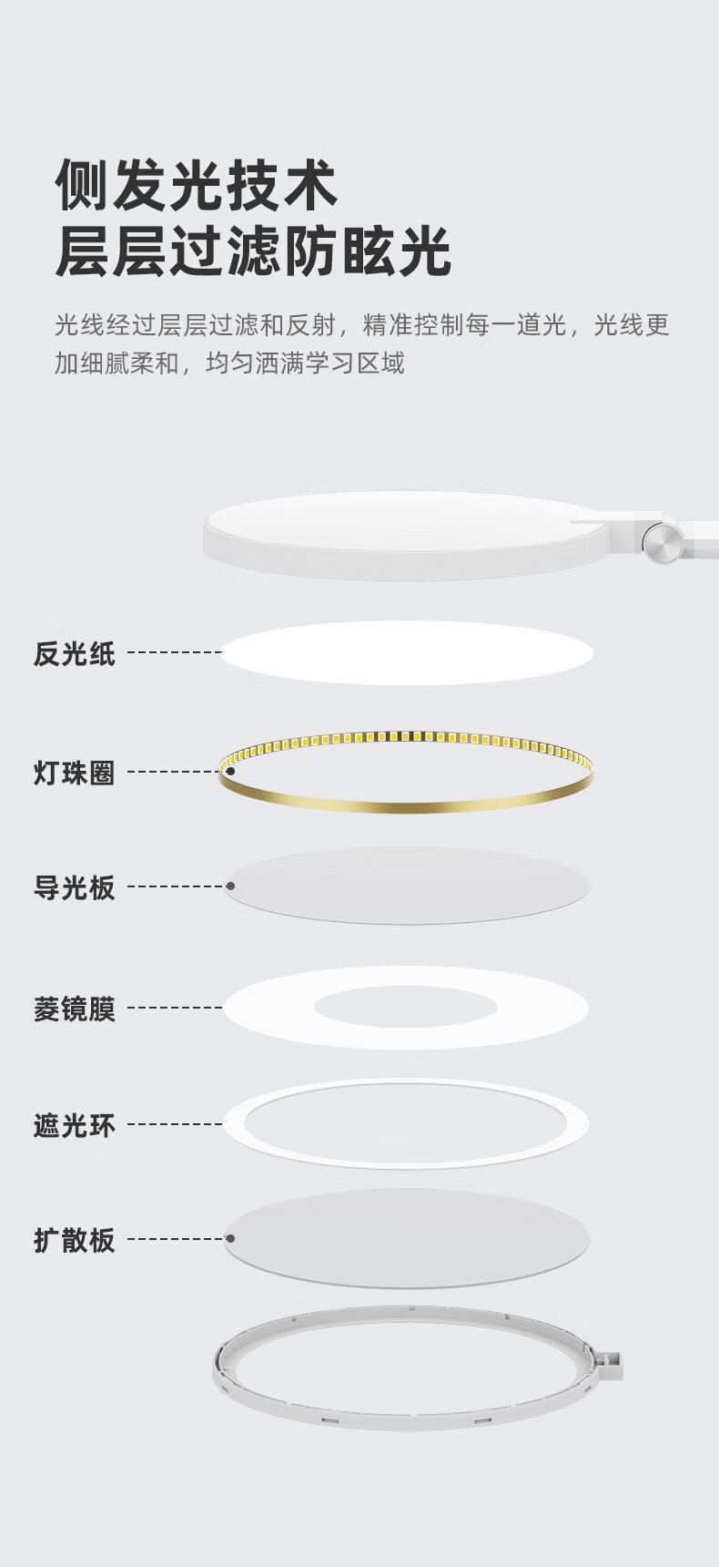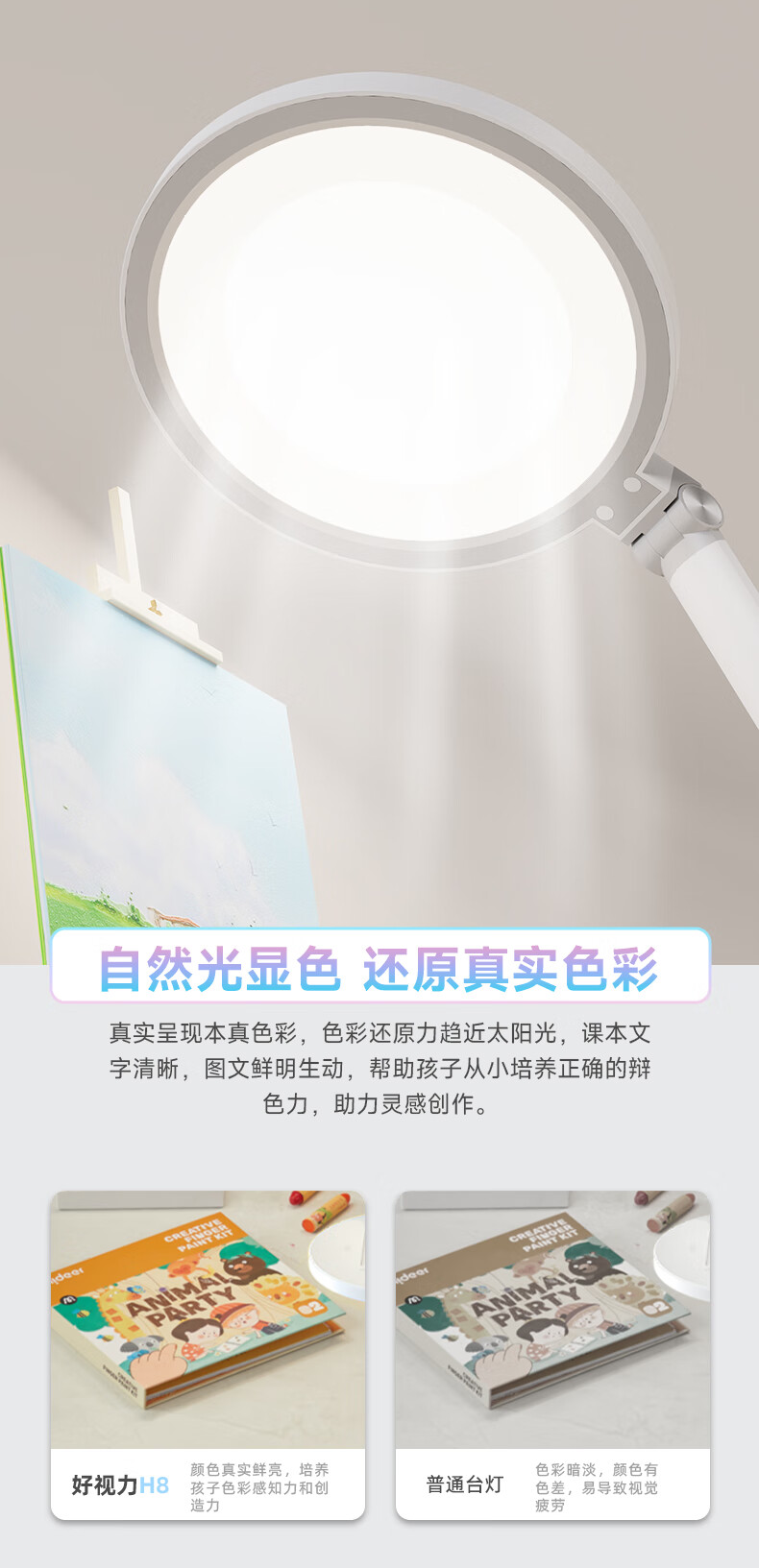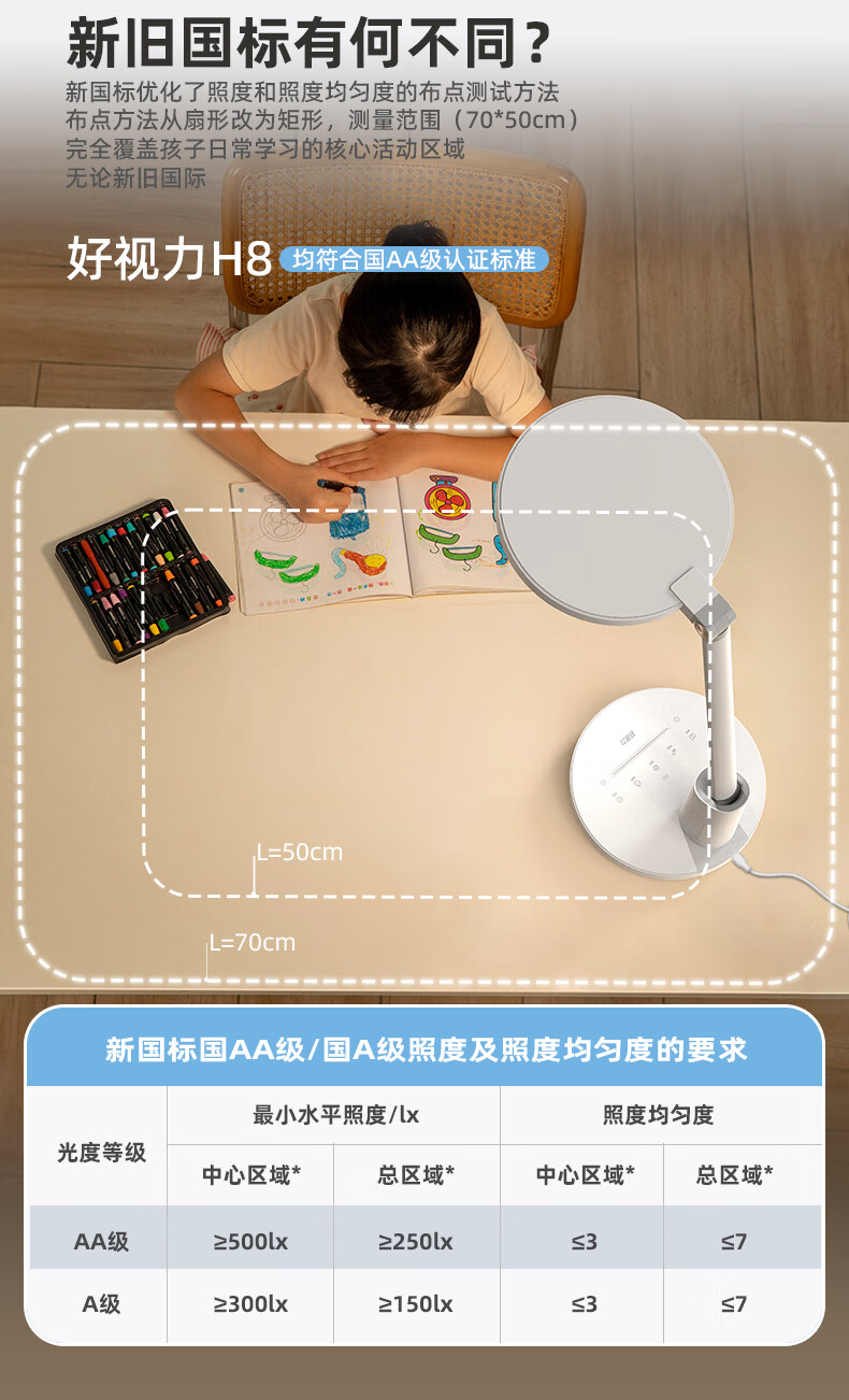 近96颗好视力高定灯珠 智能感光记忆感应周边环境光;两档色温调节读写与绘画模式轻松切换;清华博士团队联合研发